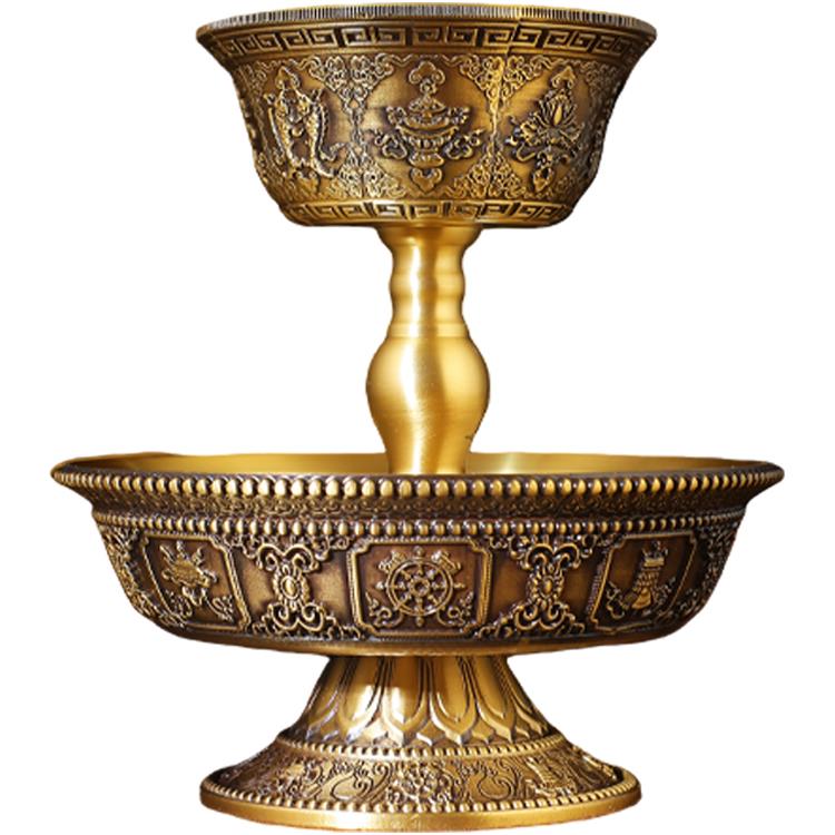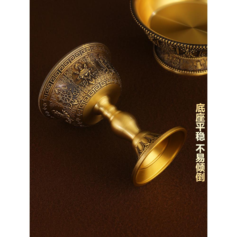 藏式精品黄铜八吉祥护法杯密宗供佛用品圣水供水杯佛前供杯大小号