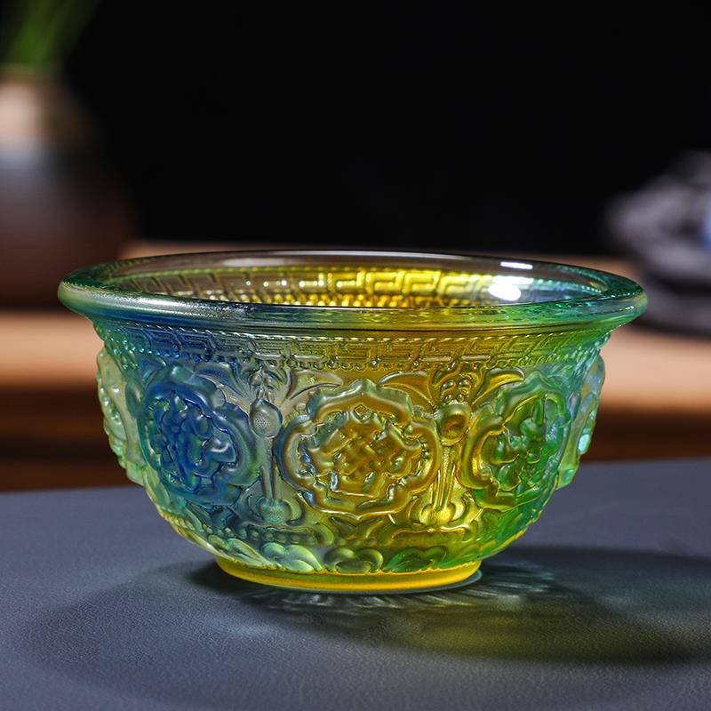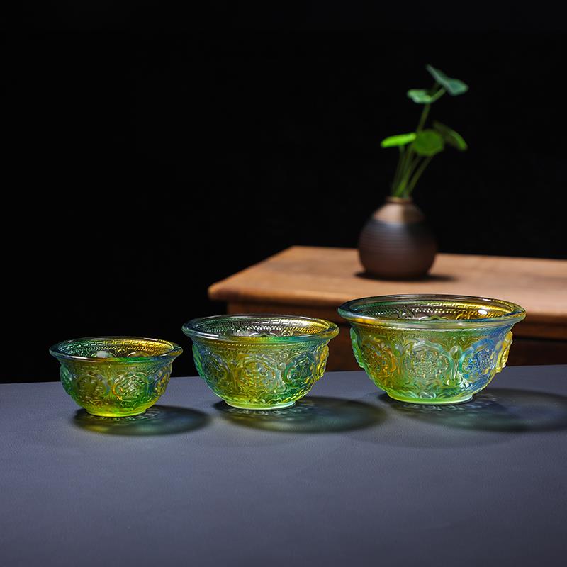 供水杯供佛杯佛前家用供奉摆件彩色吉祥供水碗圣水净水杯琉璃供杯