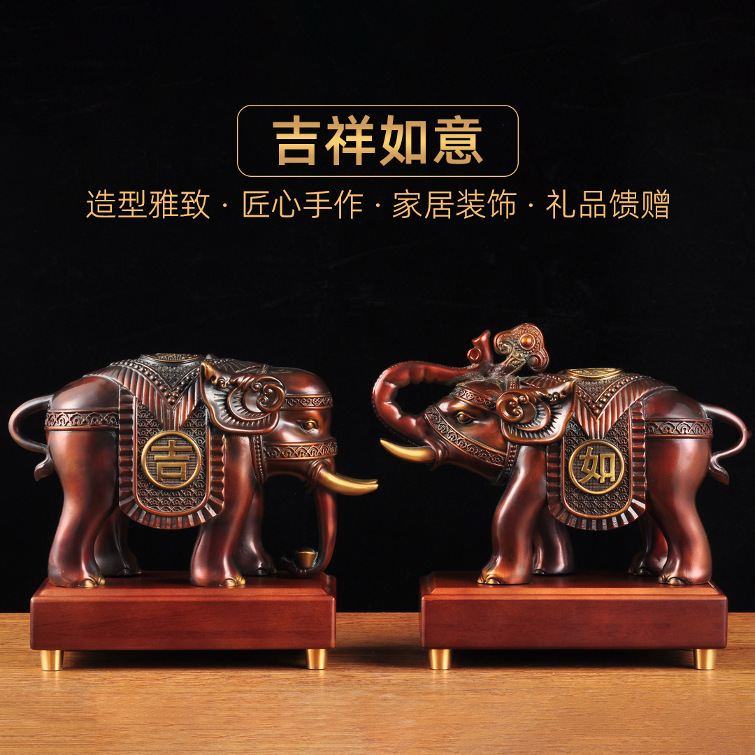 紫铜色吉祥如意大象一对招财象家居客厅电视柜玄关酒柜装饰品