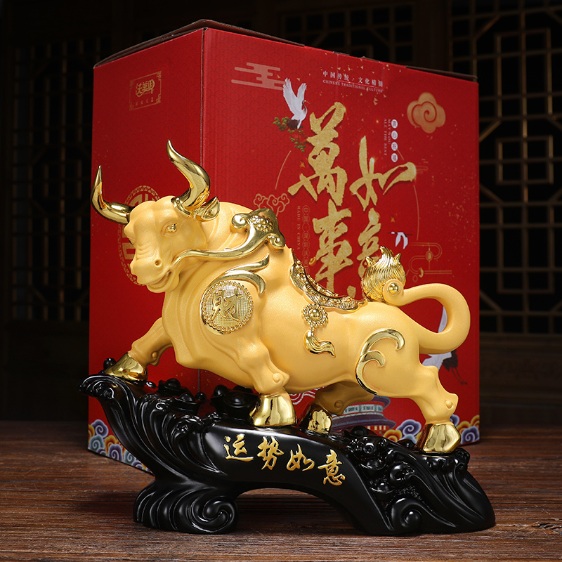招财金牛摆件生肖牛年吉祥物办公室书桌现代家居客厅玄关酒柜摆设