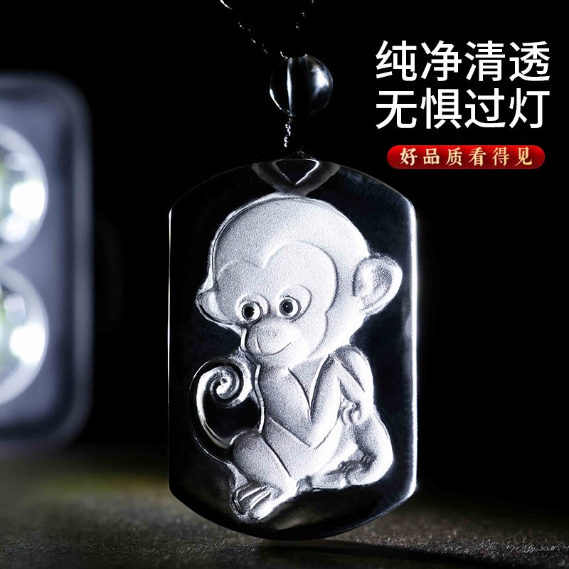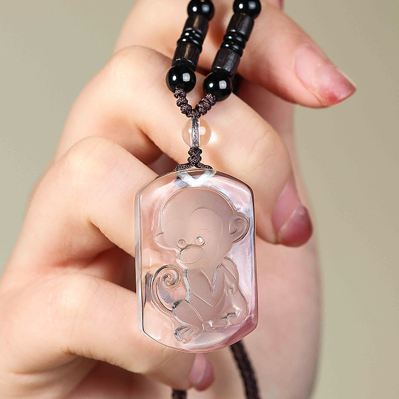 天然白水晶小猴子吊坠男款挂件饰品女士礼物生肖猴佩戴属相吉祥物