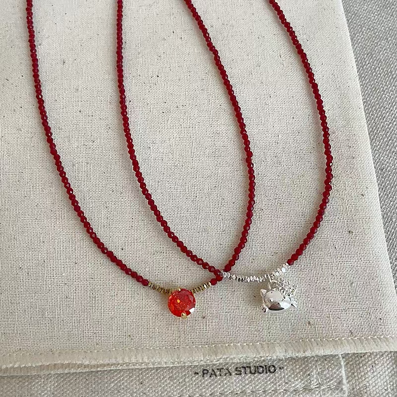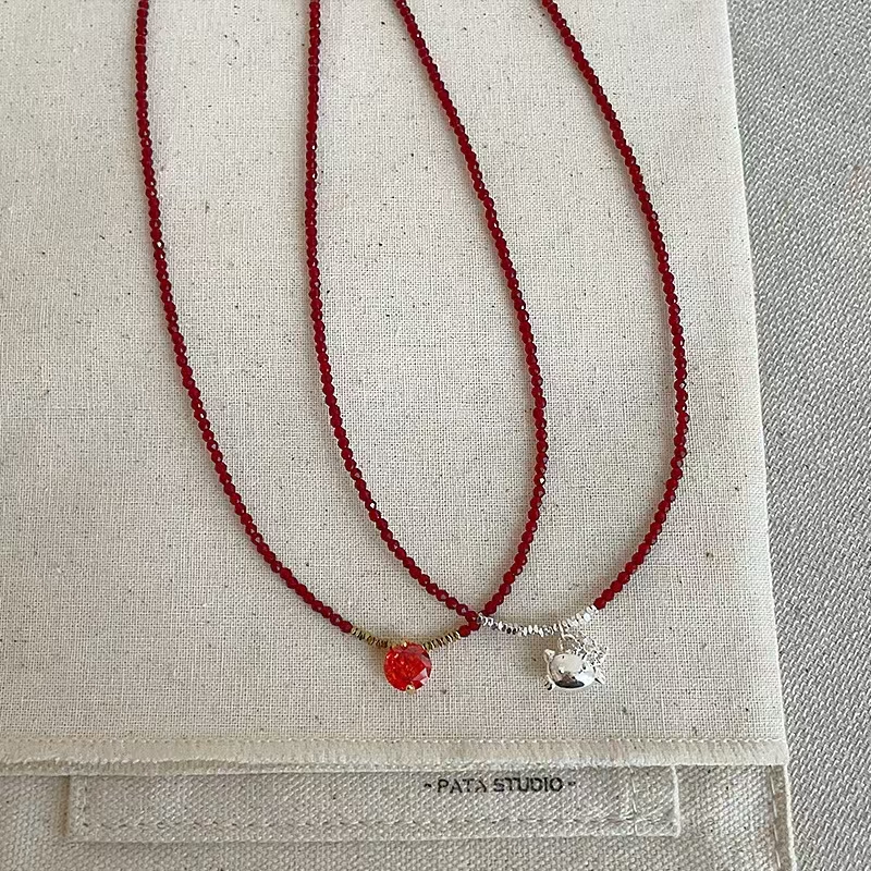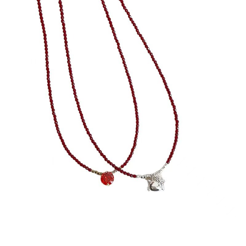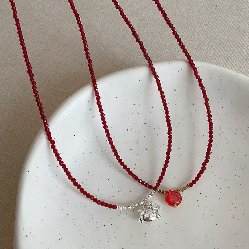 可爱猫咪蝴蝶结红色水晶串珠项链轻奢高级感时尚潮流气质锁骨链女