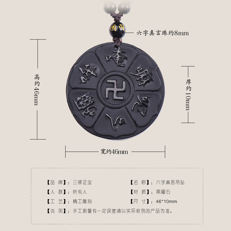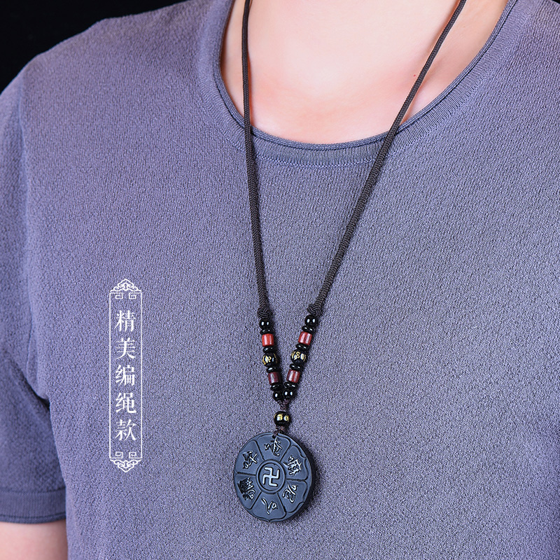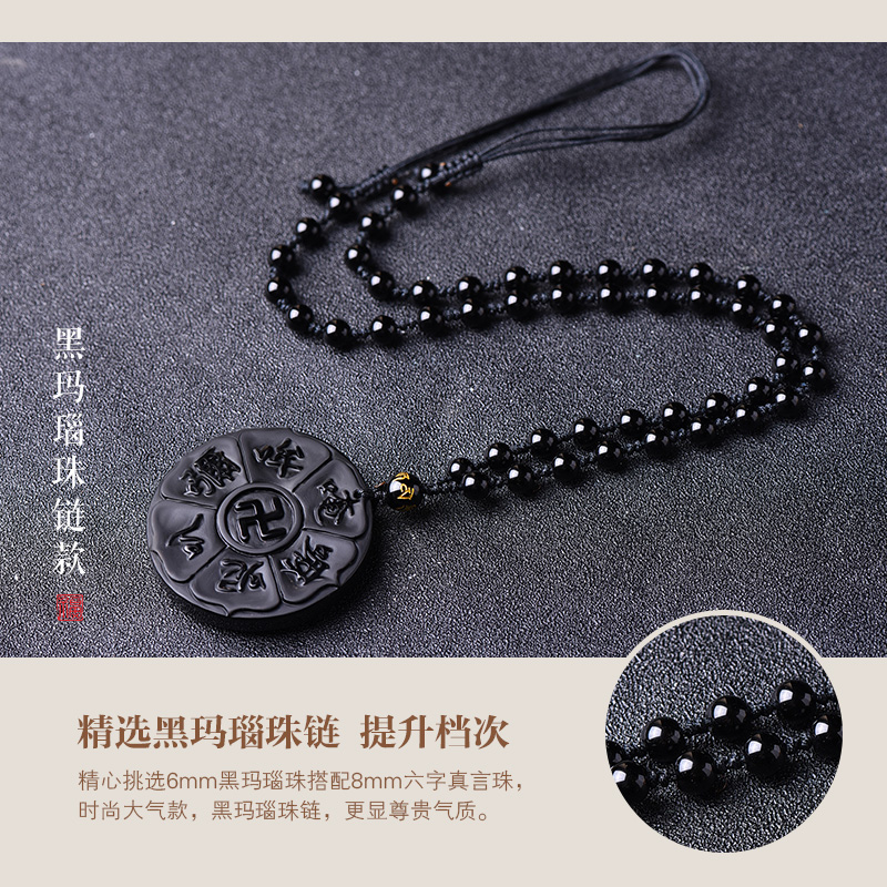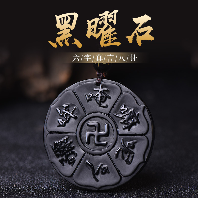 黑曜石六字真言吊坠大明咒万字符万挂件男士八卦护身福项链女饰品