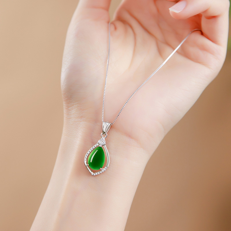 慕溪源925银镶和田碧玉项链女款2025新款配饰高级感水滴素银吊坠