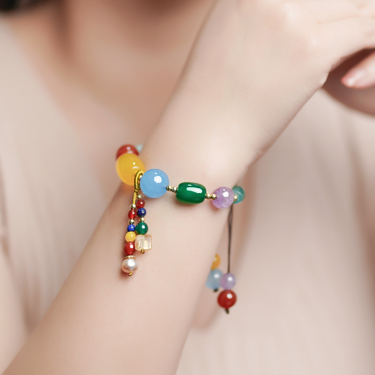 中国风彩色手链女手串玛瑙民族风手绳编织古风彩珠云南七彩串珠