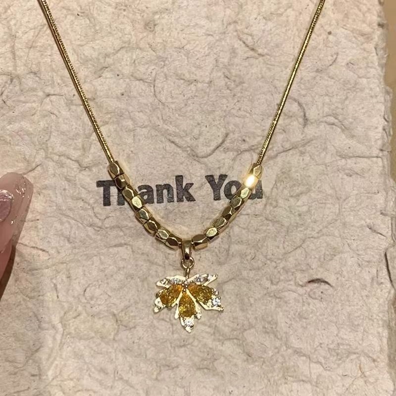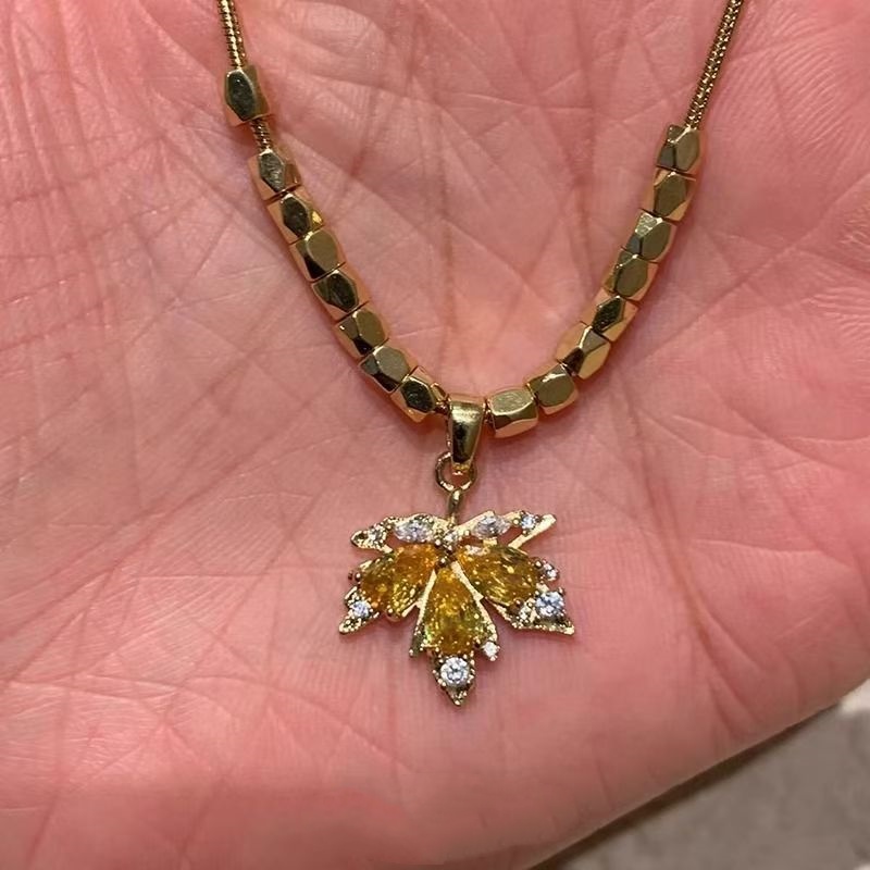 「枫起长林」瑞丽黄色枫叶吊坠项链秋冬新款高级感轻奢时尚锁骨链