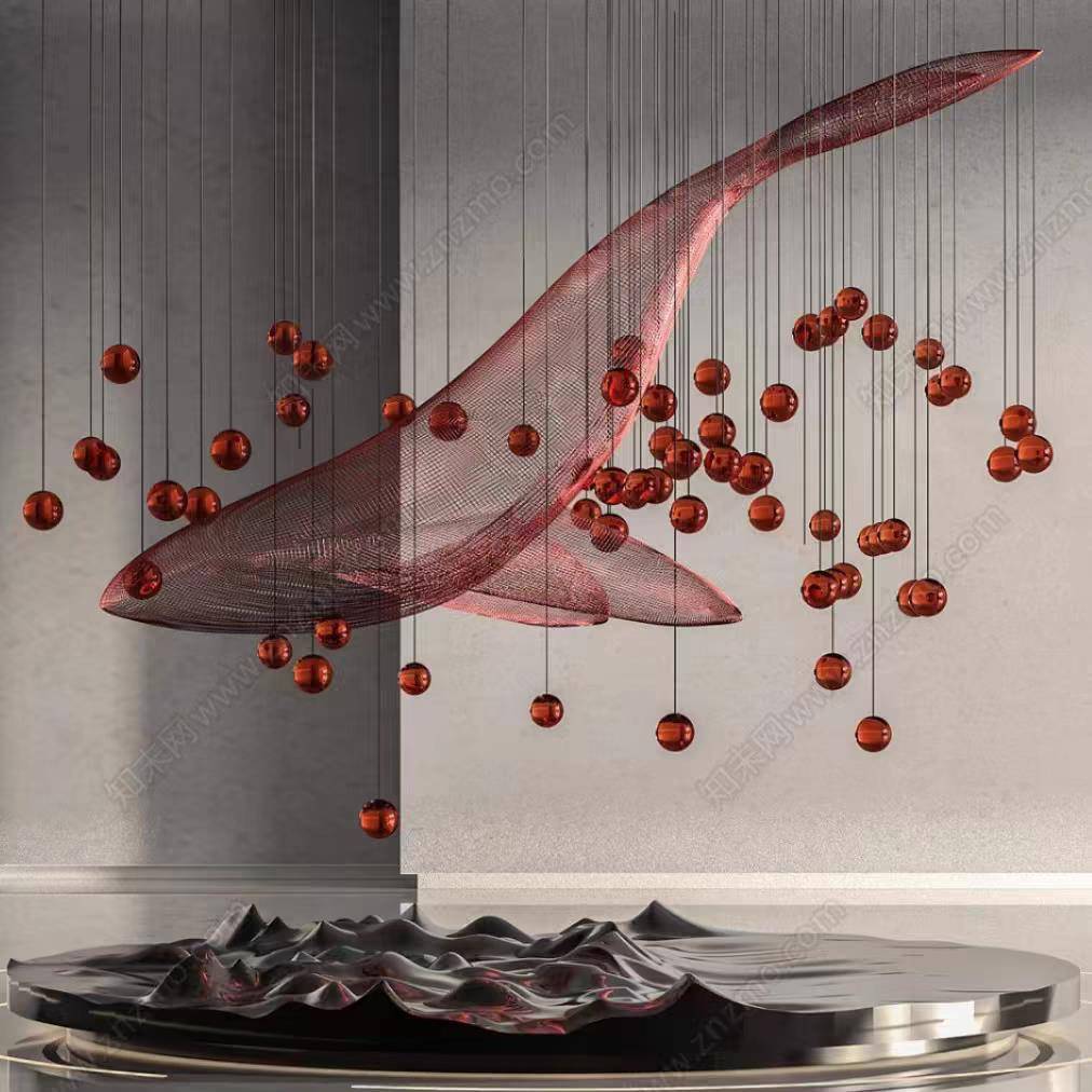 定制不锈钢铁艺镂空鲸鱼海豚雕塑餐厅酒店艺术装置海洋吊饰摆件