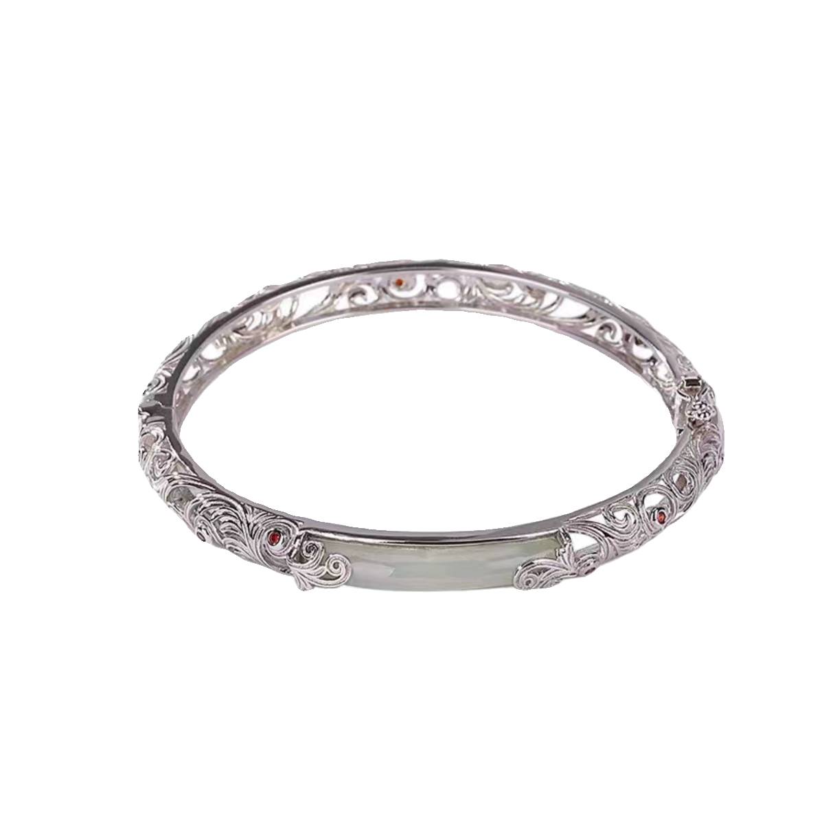 s925银镯子镂空花纹民族风如意手镯小众设计高级感古风中式送妈妈