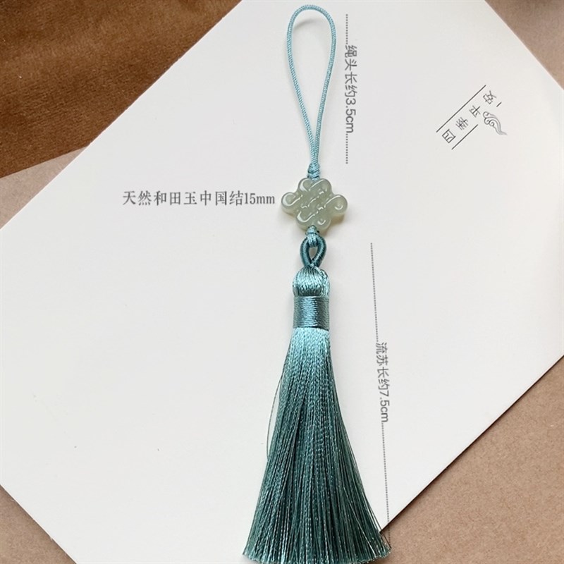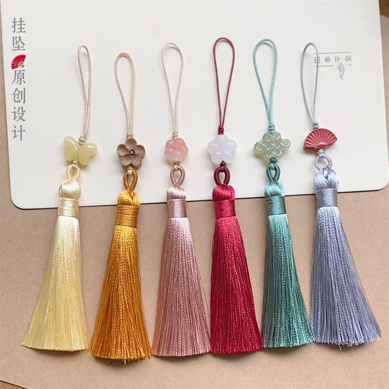 新款国风手工流苏扇坠饰品穗子扇子吊坠和田玉中R国结压襟手机挂