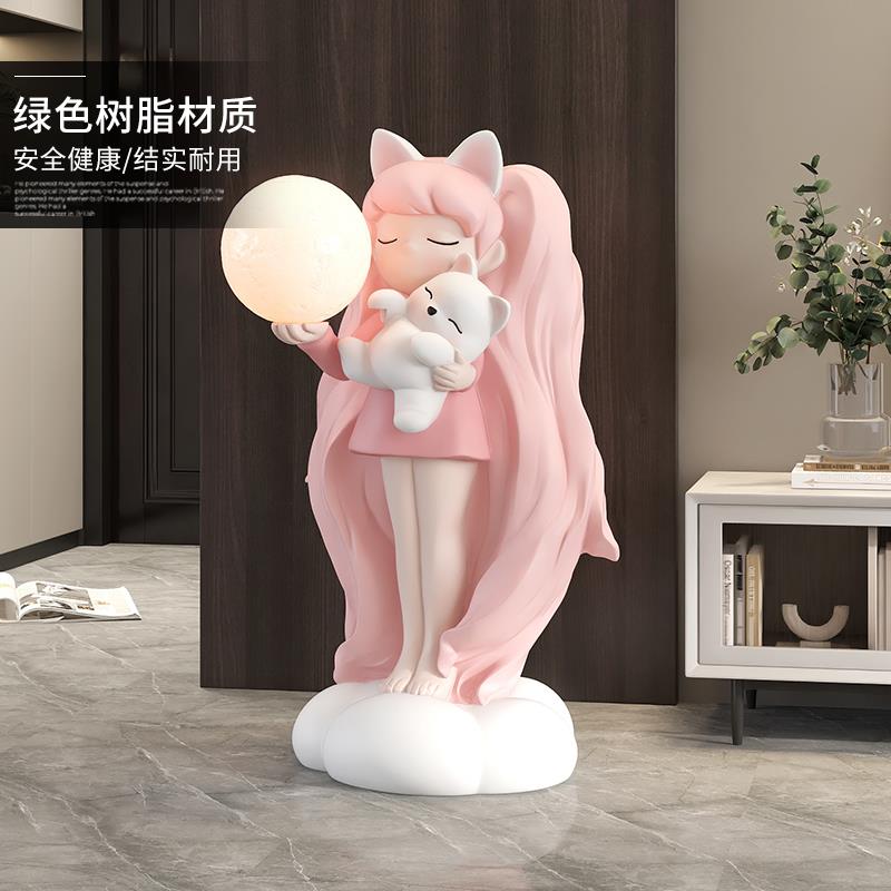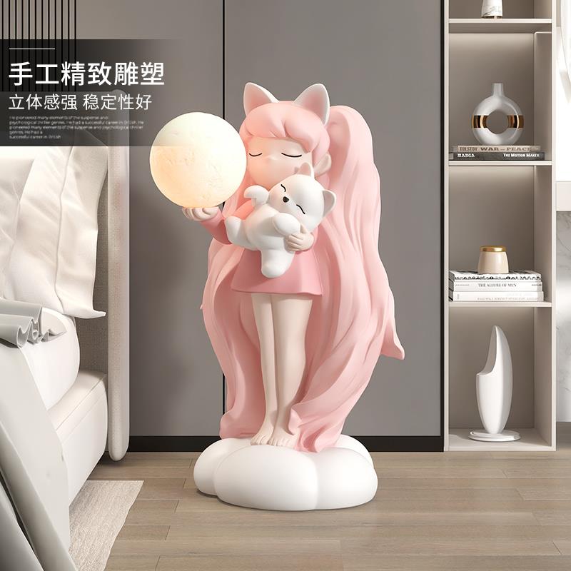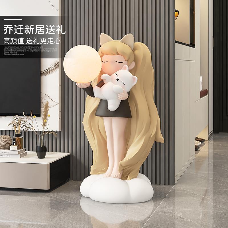 大型女孩落地摆件家居饰品客厅电视柜沙发旁卧室床头夜灯乔迁礼物