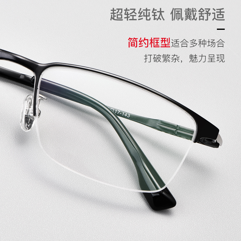 纯钛眼镜框眼镜架男时尚半框眼镜可配近视眼镜有度数休闲眼镜框架