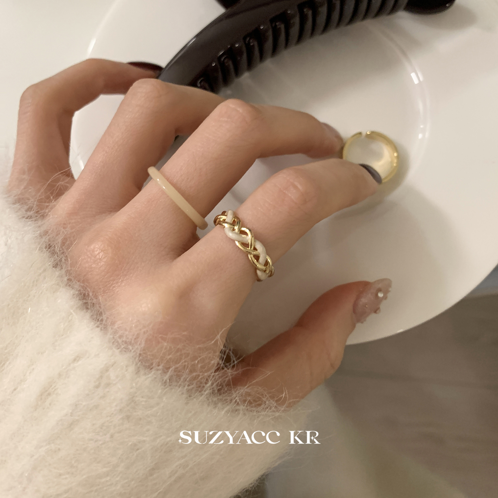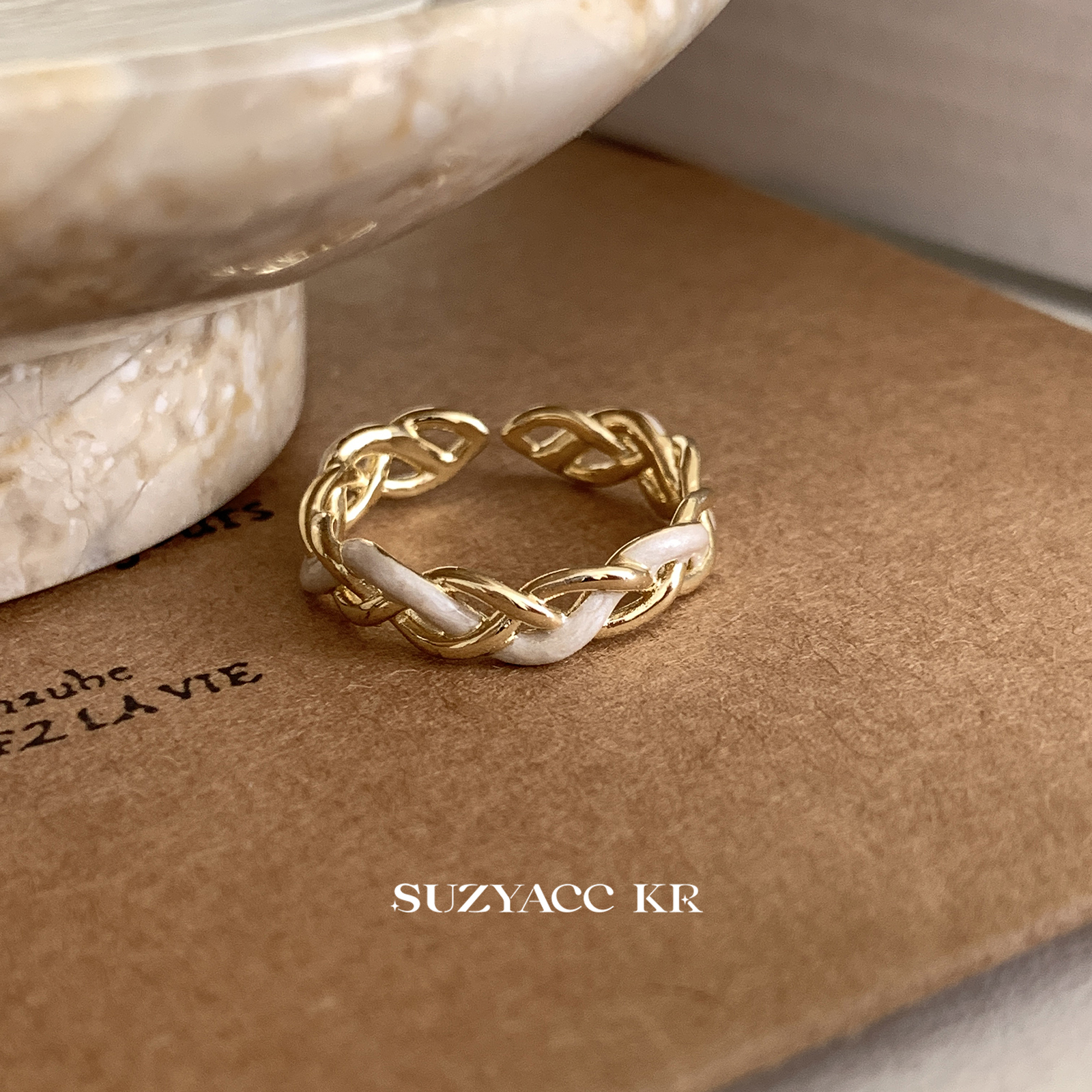suzyacc kr复古风珐琅麻花戒指轻奢高级感小众设计食指戒可调节女