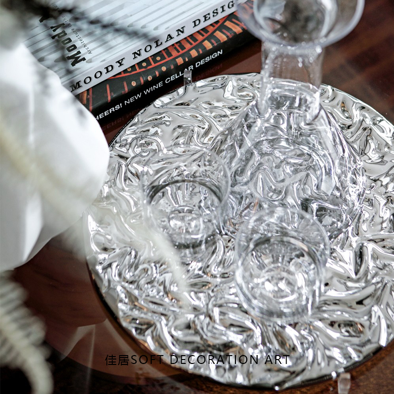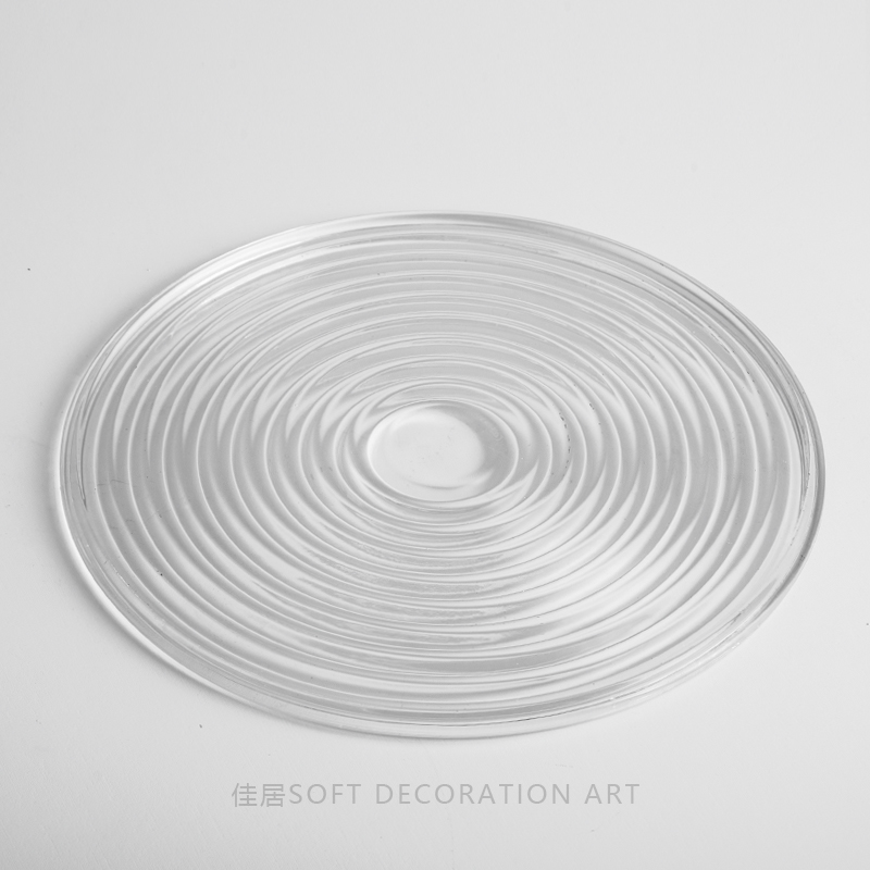 现代简约轻奢g创意艺术软装桌面圆形玻璃托盘样板房间卧室客厅摆