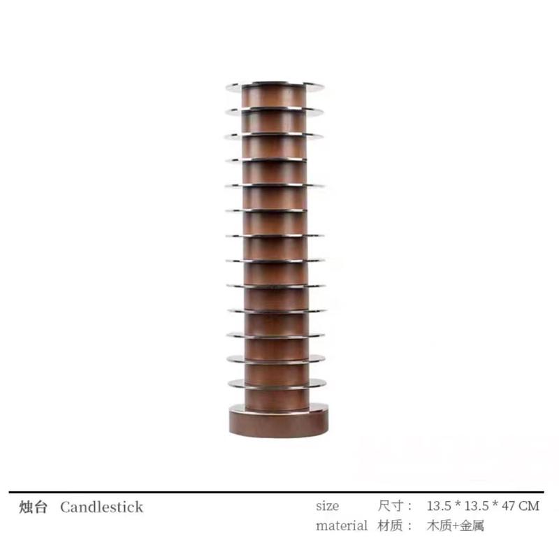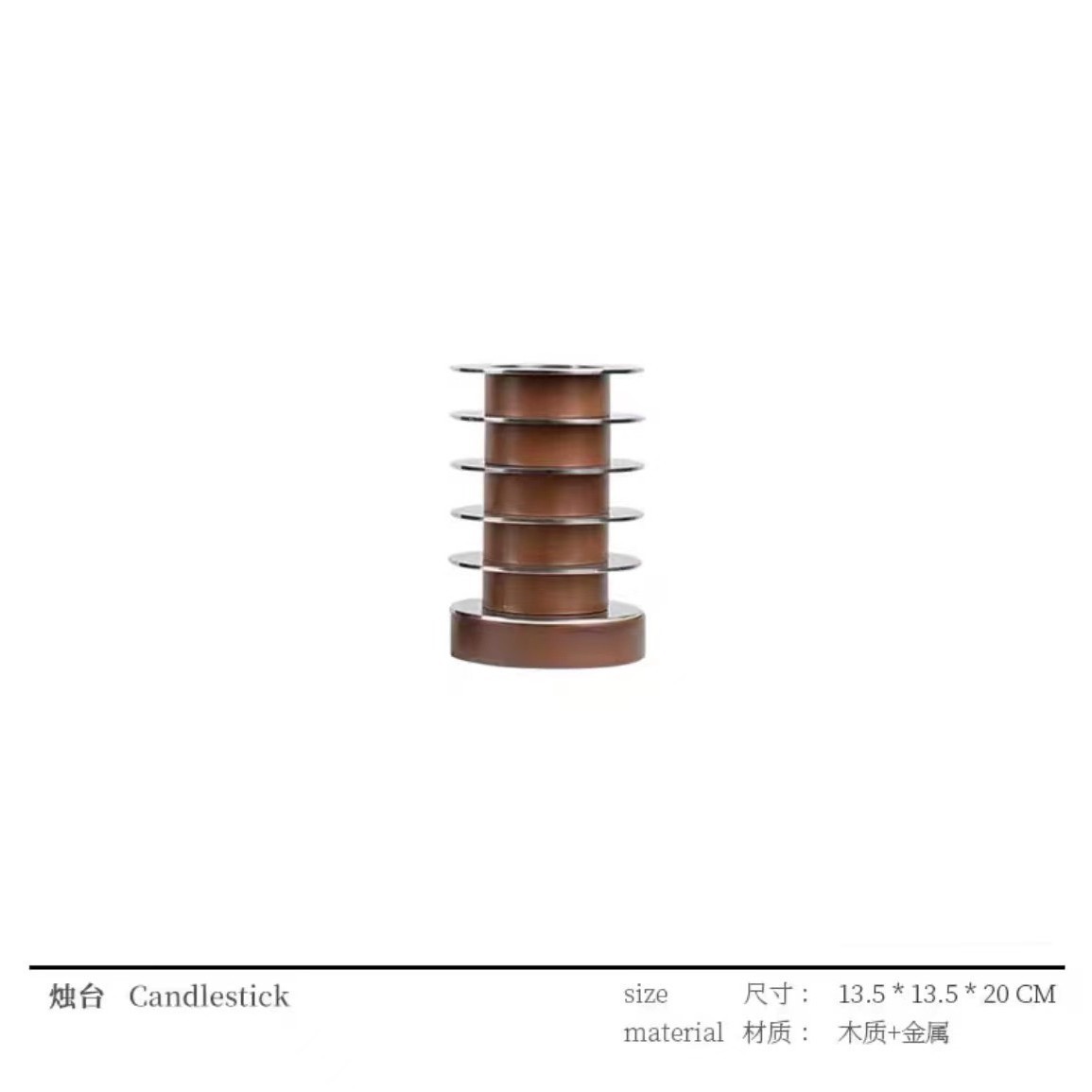 现代轻奢层叠金属实木烛台花器样板间家居客厅售楼部展厅玄关摆件