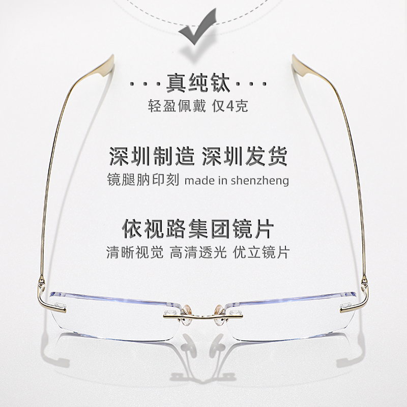 金丝无框眼镜男近视可配度数配眼镜超轻纯钛男士无边框近视镜男款