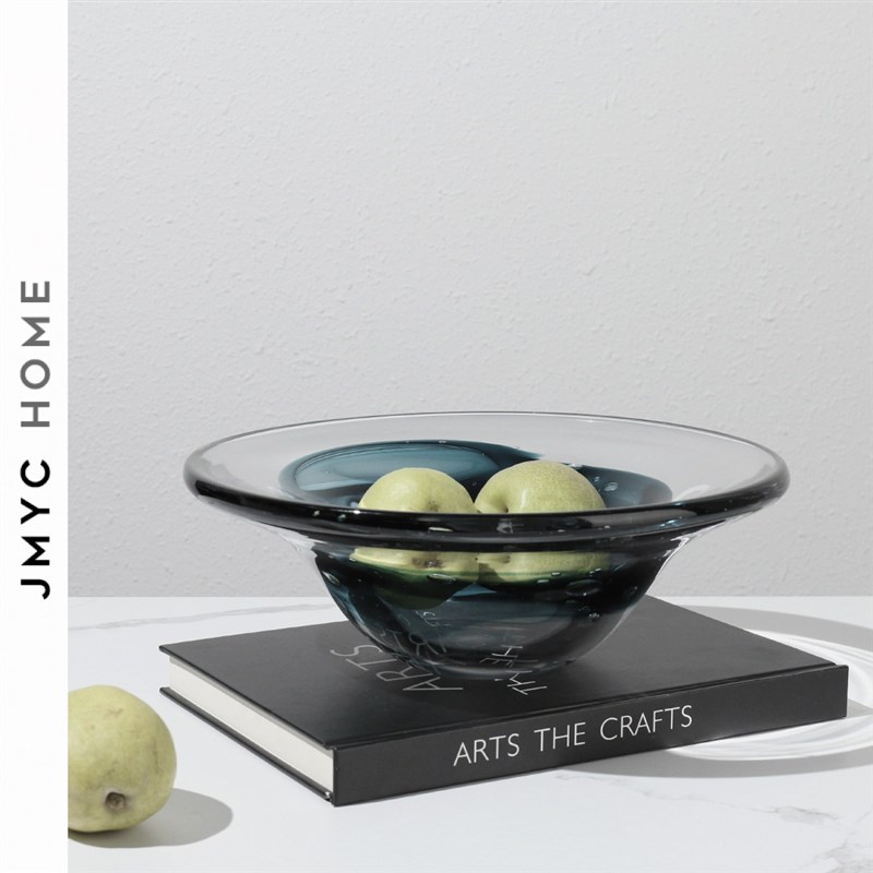 现代轻奢家居饰品玻璃水果盘酒店餐厅桌面摆件简约家用款托盘软装