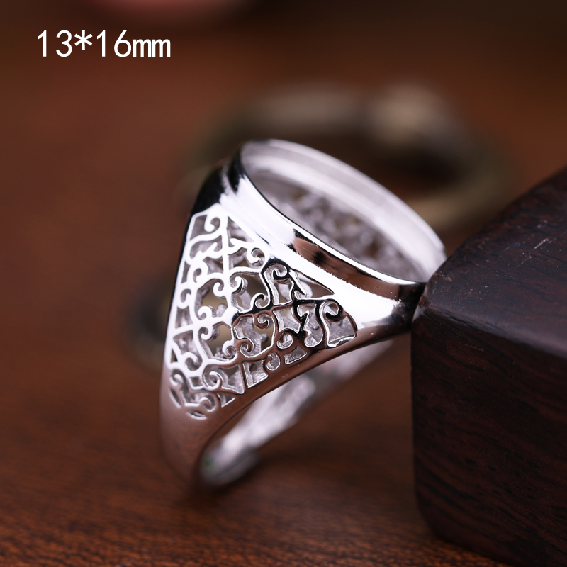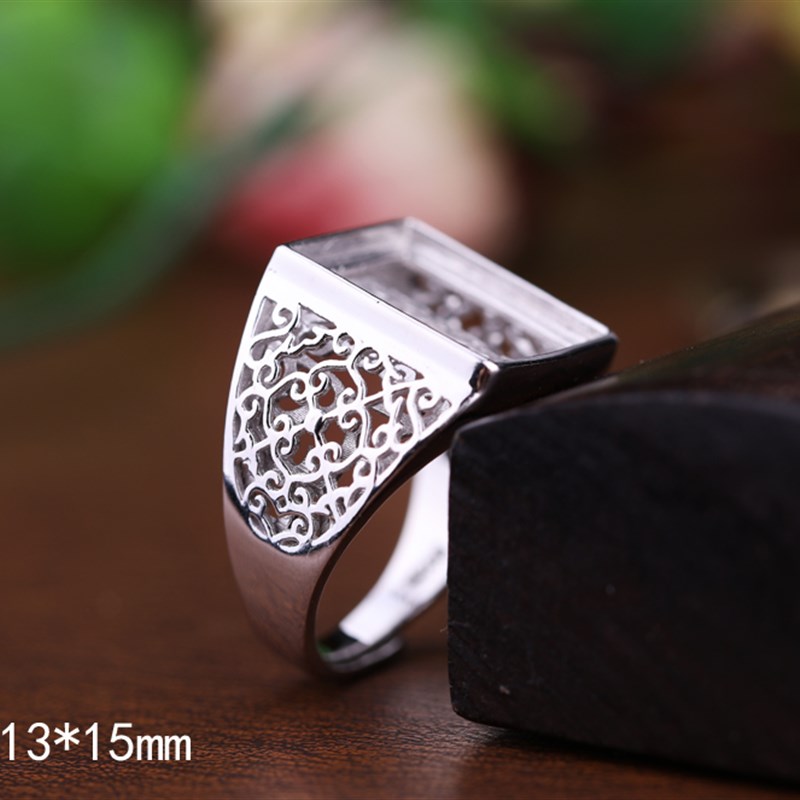 S925银男戒指空托13*15镶嵌松石蜜蜡封底方戒托17*22 13*1X6 12*1