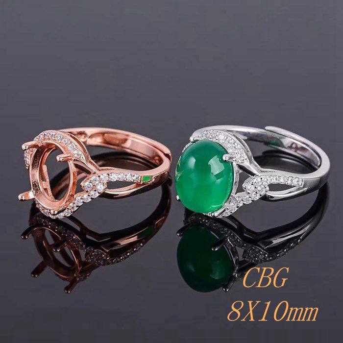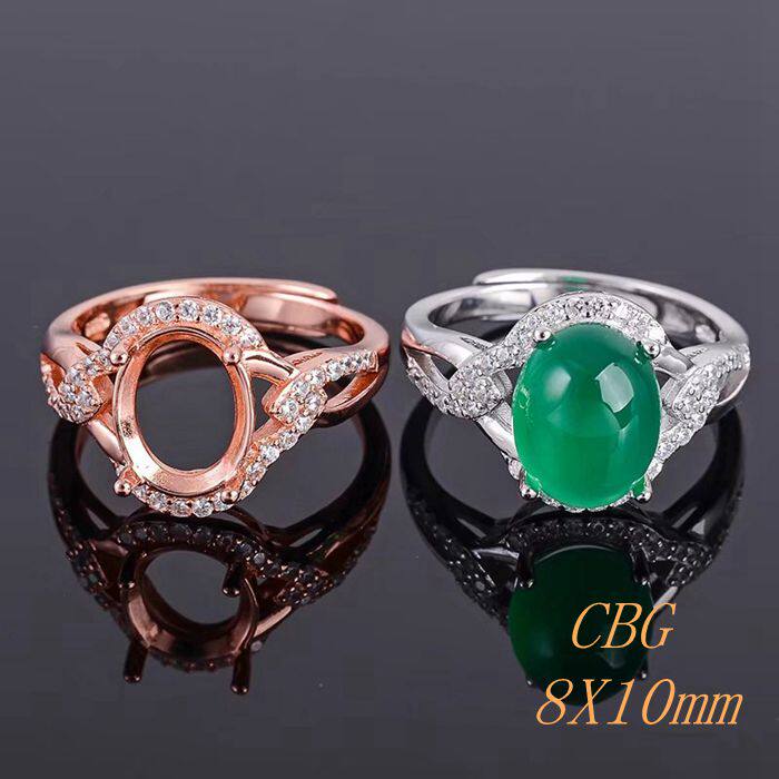 活圈925银戒指空托 8x10女款戒托 来石代镶嵌玉石琥珀 可做固口