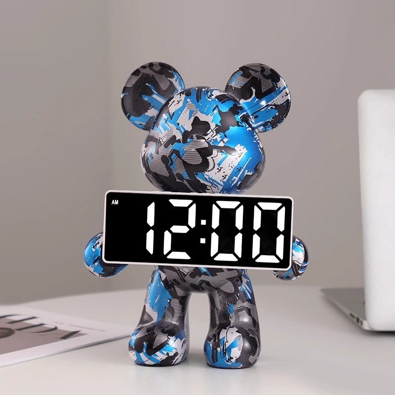 创意暴力熊时钟摆件客厅桌面轻奢高档装饰数字钟表摆台式电子闹钟