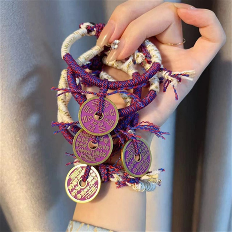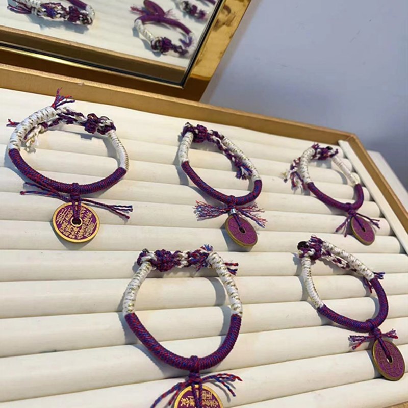 紫色山鬼花钱手绳 精工x手编棉绳手链 TY1016