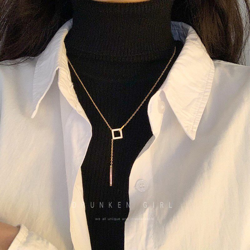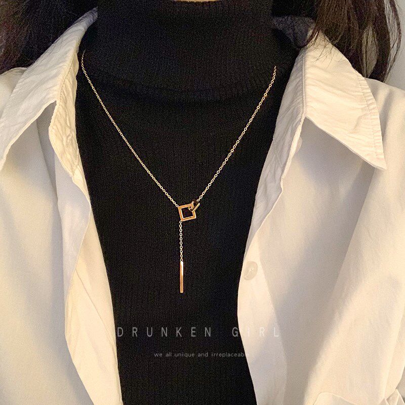 流苏几何吊坠项链女秋冬轻奢小众高级感气质毛衣链搭配打底衫配饰