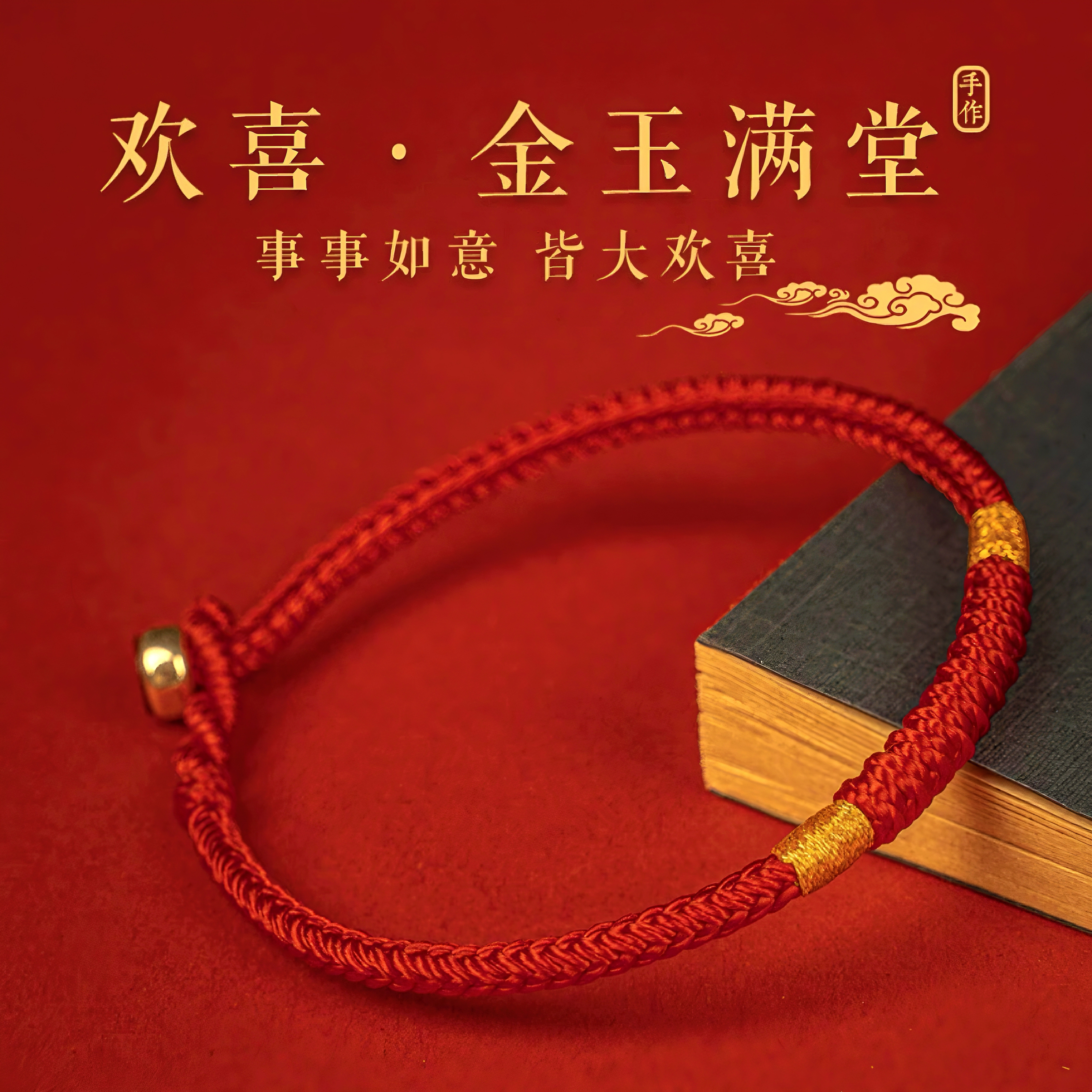 本命年手绳太岁红绳手链纯手工编绳红色手作编织学生情侣手绳diy