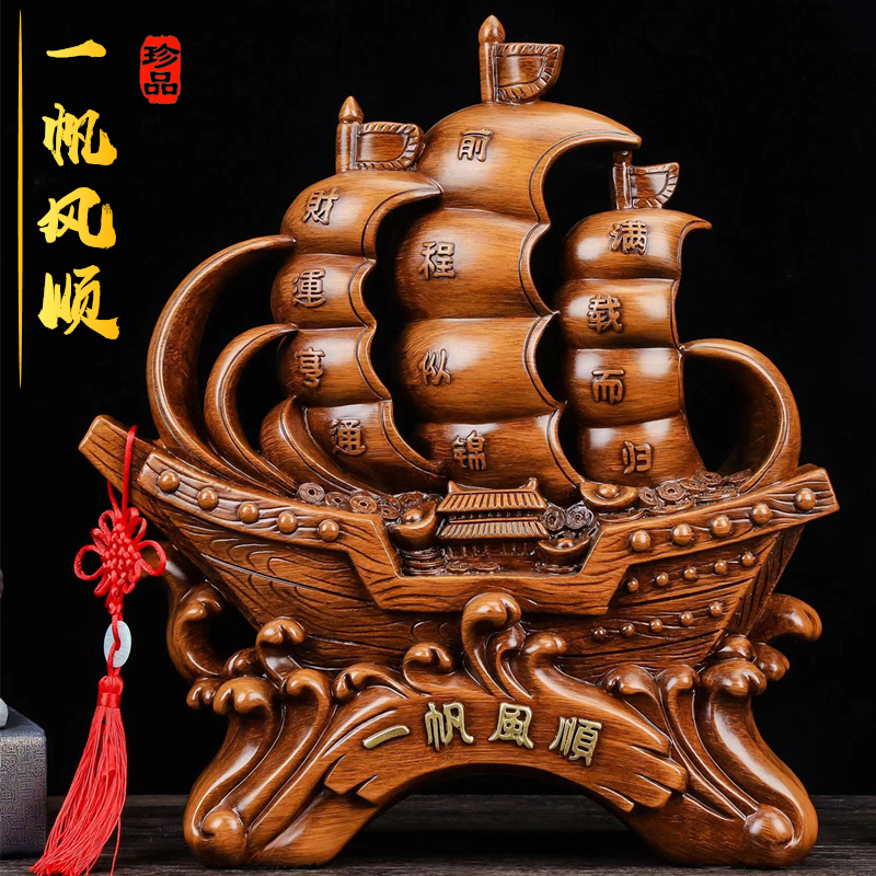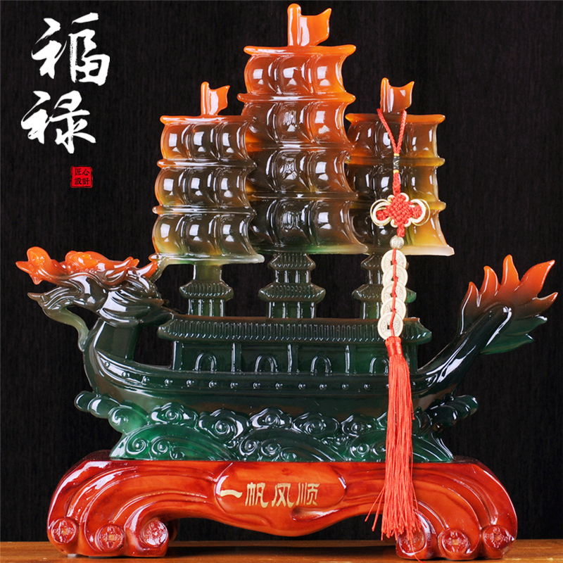一帆风顺龙帆船摆件办公室桌玄关电视酒柜客厅工艺装饰品开业礼品
