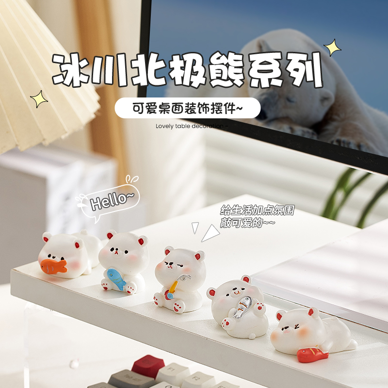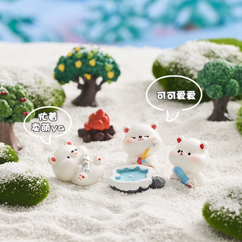 现货速发微景观雪景造景小摆件可爱解压系北极熊办公室桌面装饰品