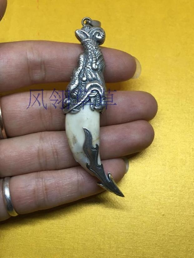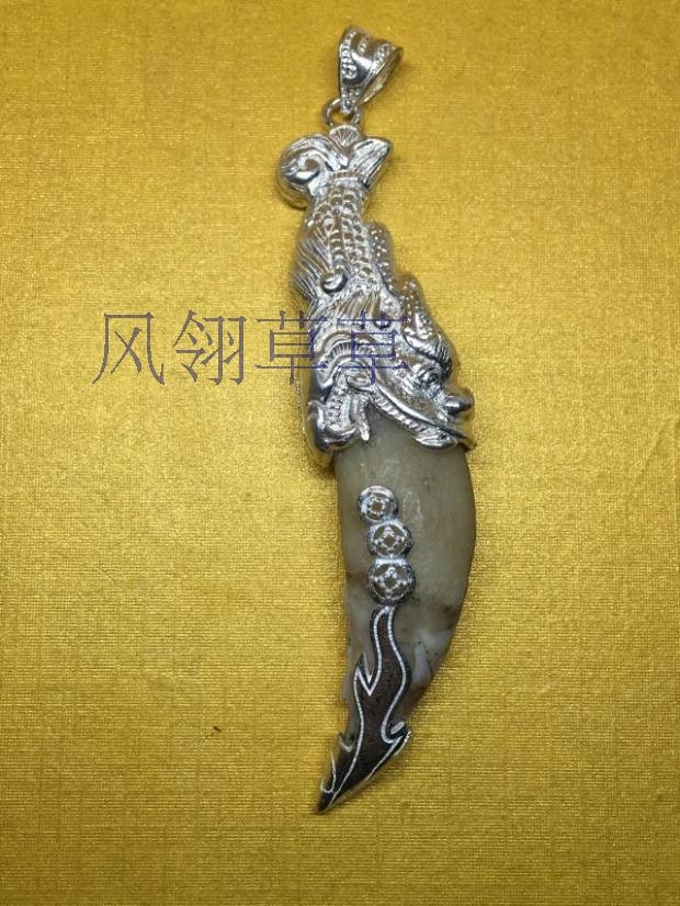 爆款推荐纯银鱼化龙牙齿加工套包银镶嵌套吊坠牙齿保护套防裂挂坠