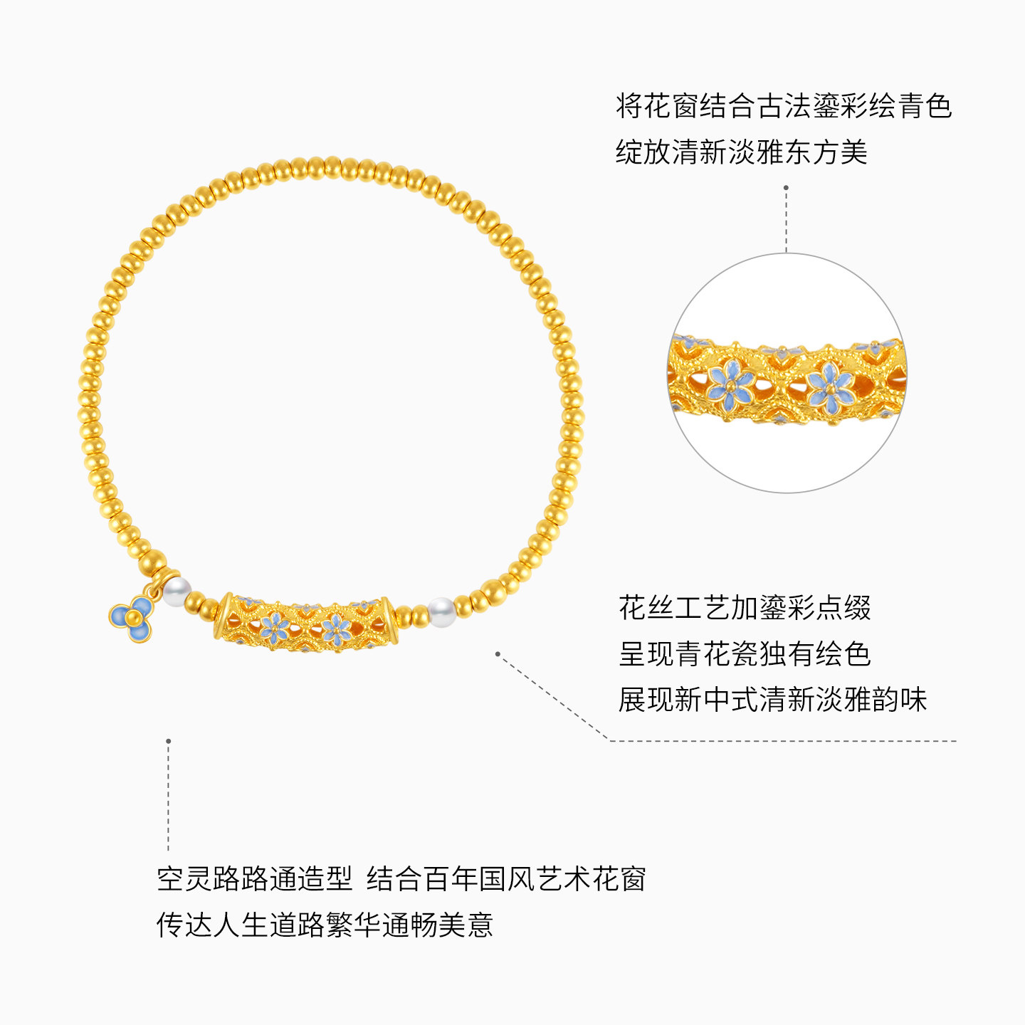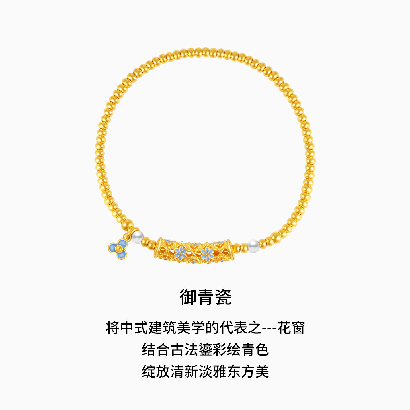 潮宏基御青瓷黄金珍珠手链足金手串手饰古法金珐琅气质生日 卟