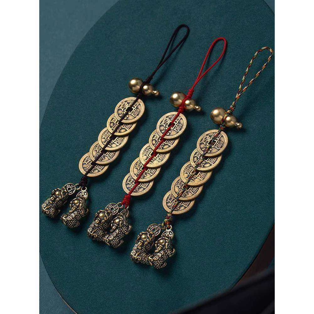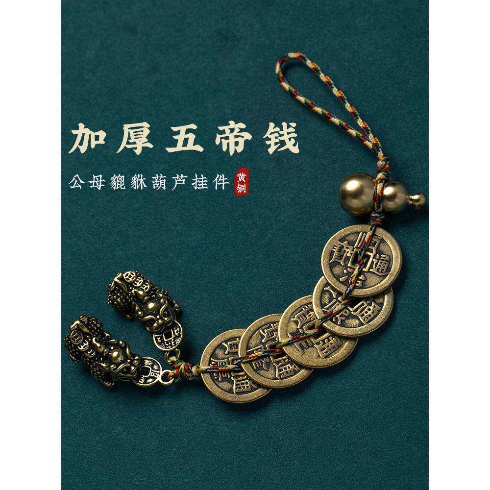 纯黄铜招财公母貔貅五帝钱葫芦挂件家中门对门书房客厅吉祥挂件