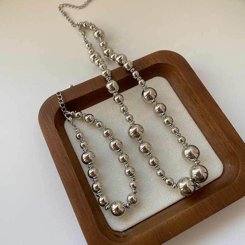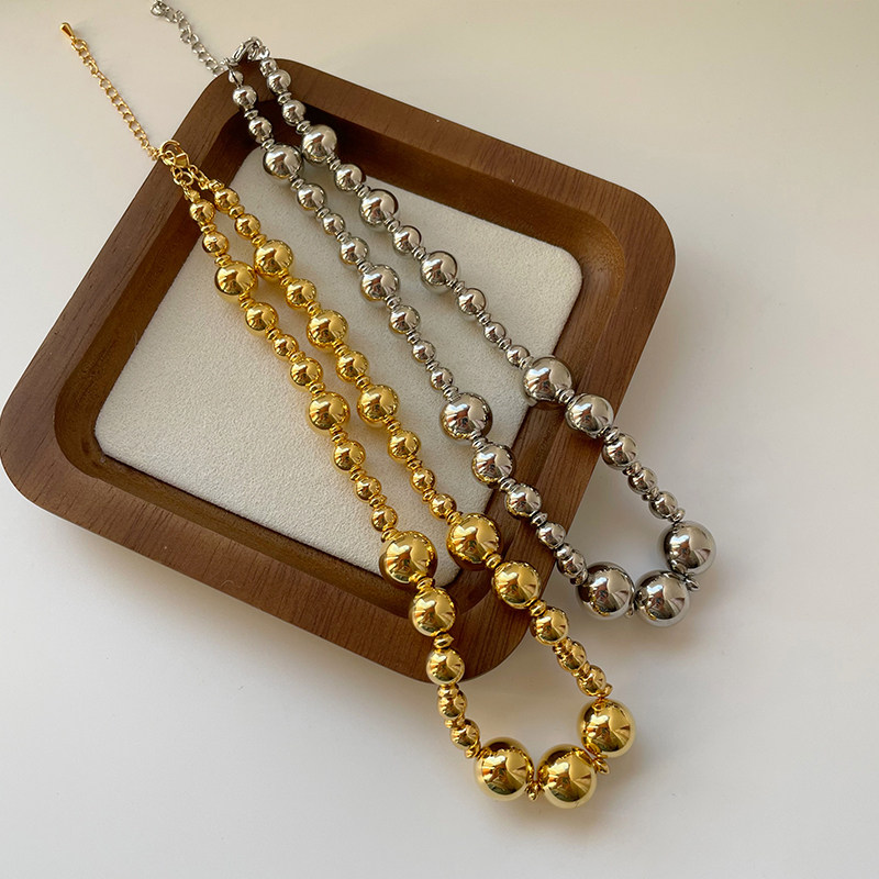 欧美风轻奢小众高级感金属圆球空心项链手链锁骨链高级感串珠配饰