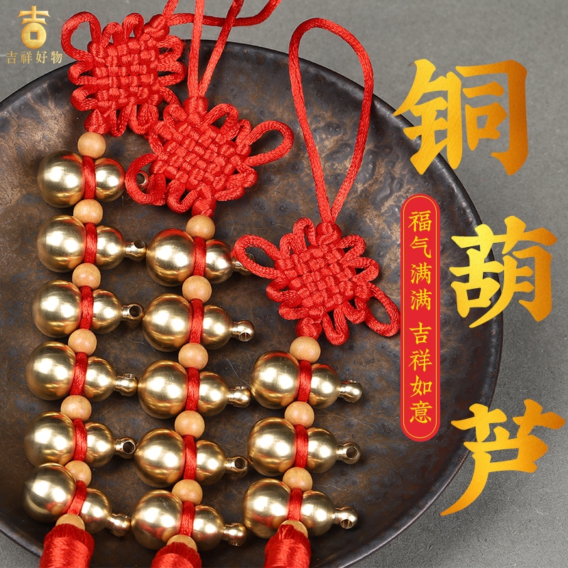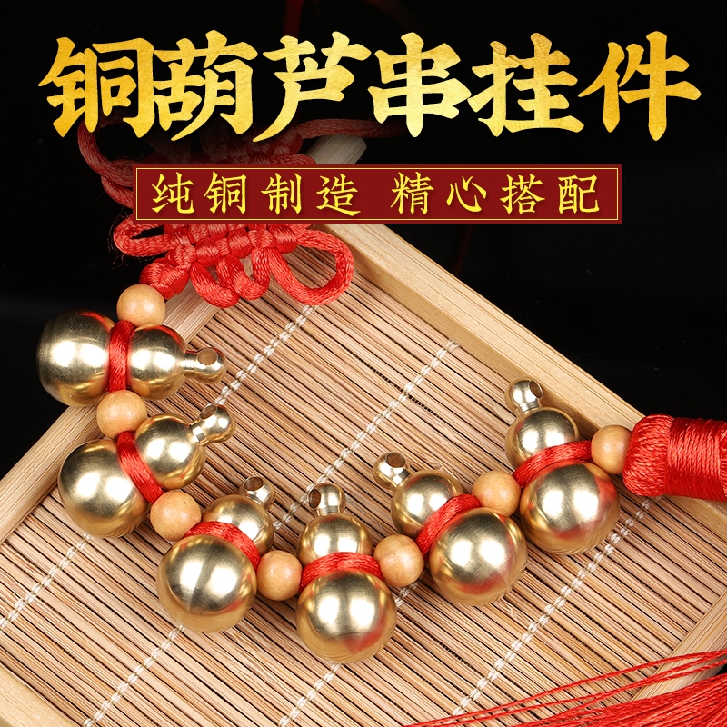 铜葫芦串挂件实心全铜一串铜葫芦金属五六七八九十个葫芦连串挂饰