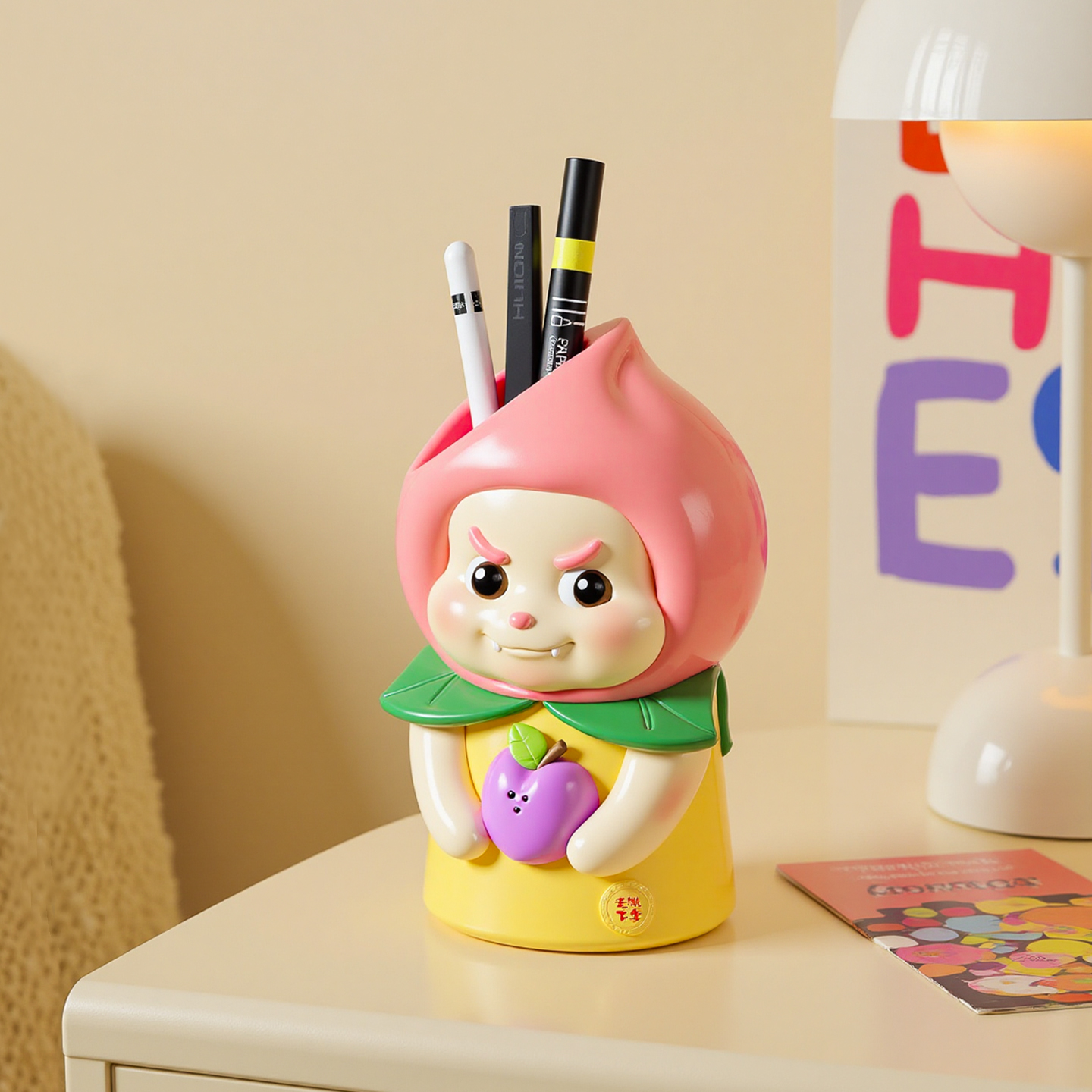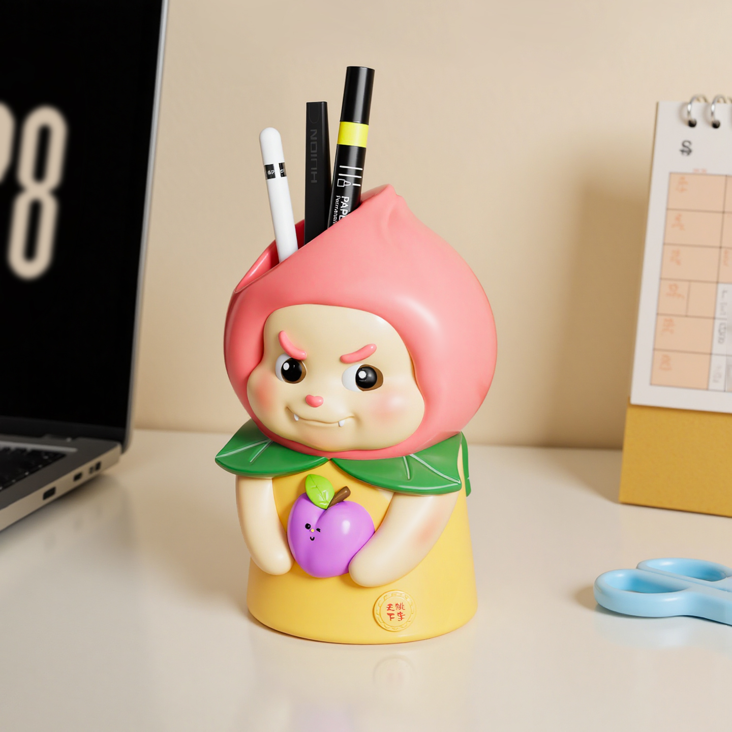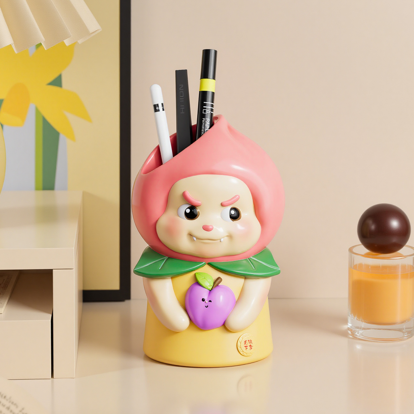 创意可爱桃子笔筒摆件办公室工位桌面手机支架治愈系教师节礼物
