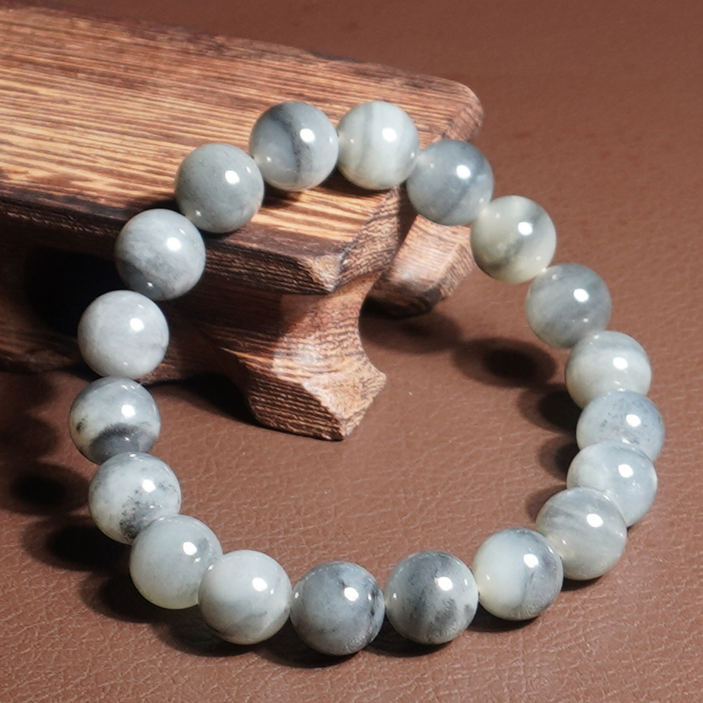 亏麻了方言和田玉新疆油润细腻一线天意境青花籽料10mm手链手串A6