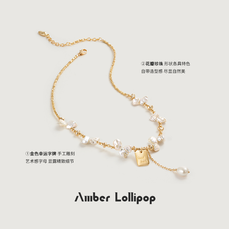 王玉雯同款 Amber Lollipop珍珠项链女花瓣巴洛克轻奢吊坠毛衣链