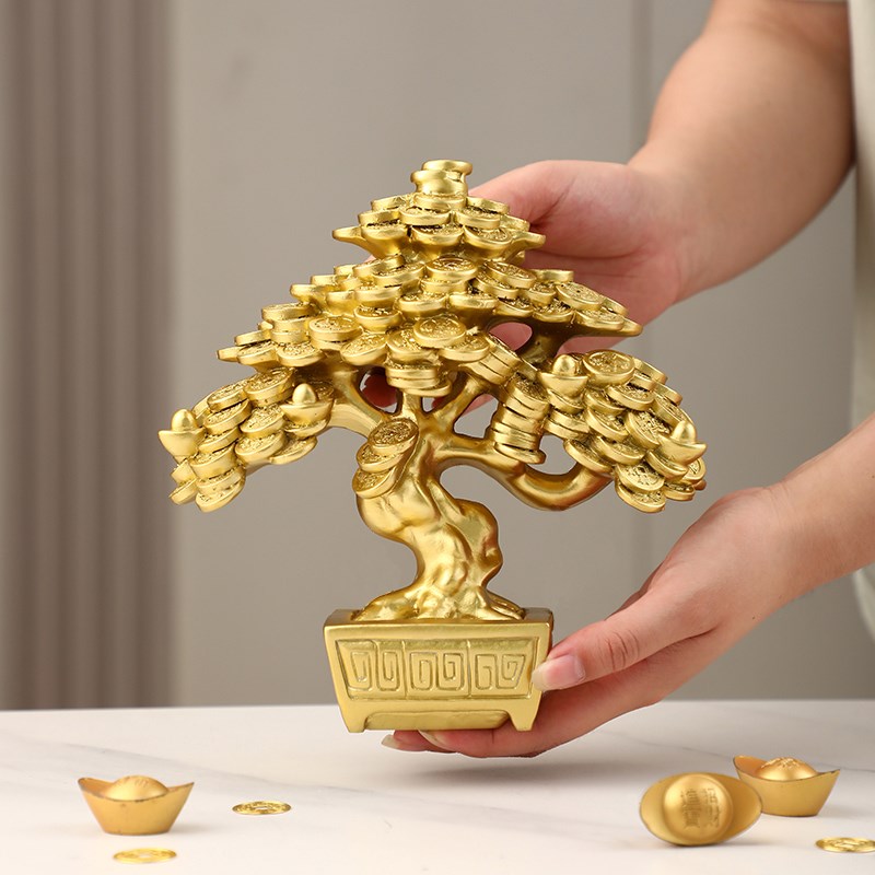 铜钱发财树招财摆件家居客厅前台酒柜摇钱树装饰乔U迁办公开业礼