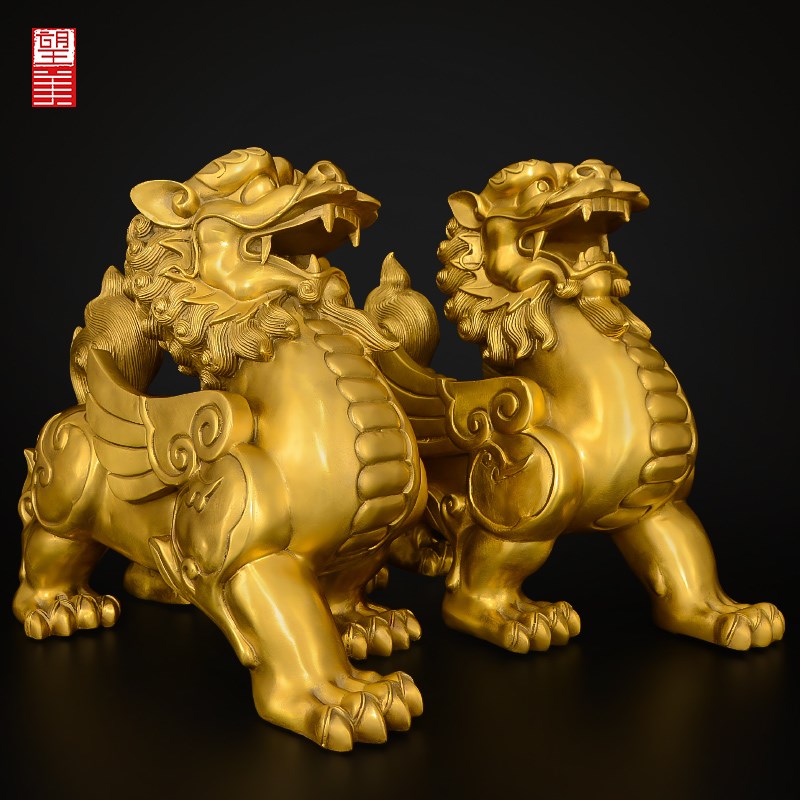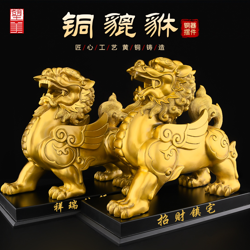 铜貔貅摆件一h对公母招旺客厅办公室财铜制黄铜霸王皮丘带底座大