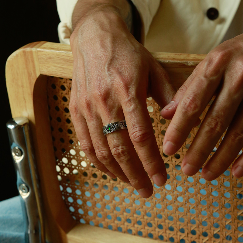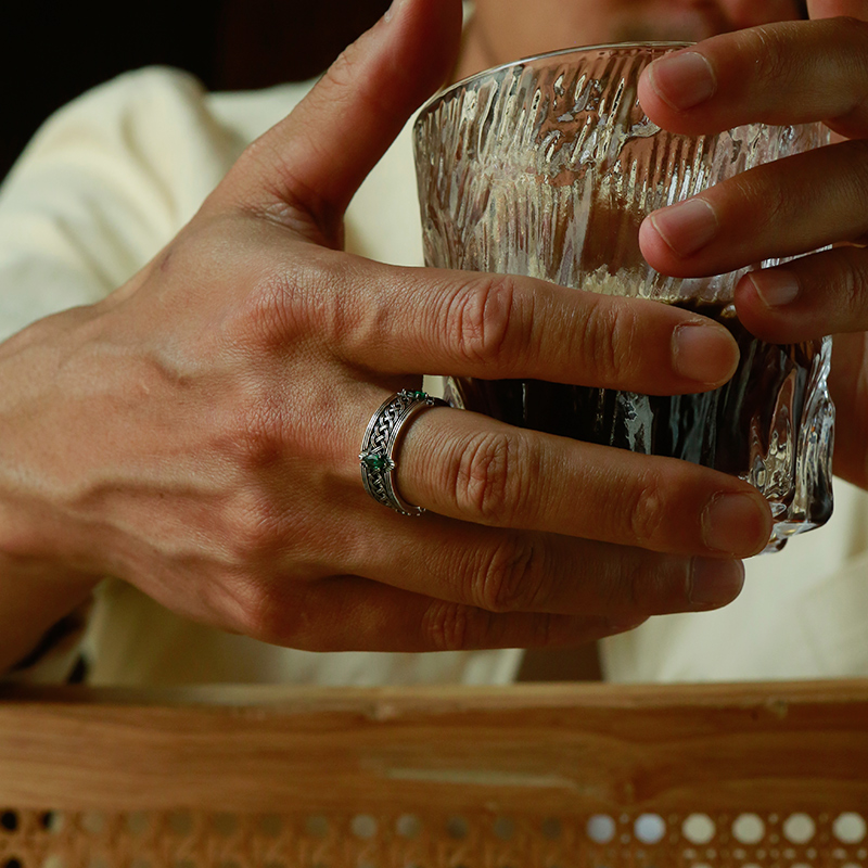 IDEAGEMER 绿宝石戒指男生潮流设计感小众复古个性高级感食指指环