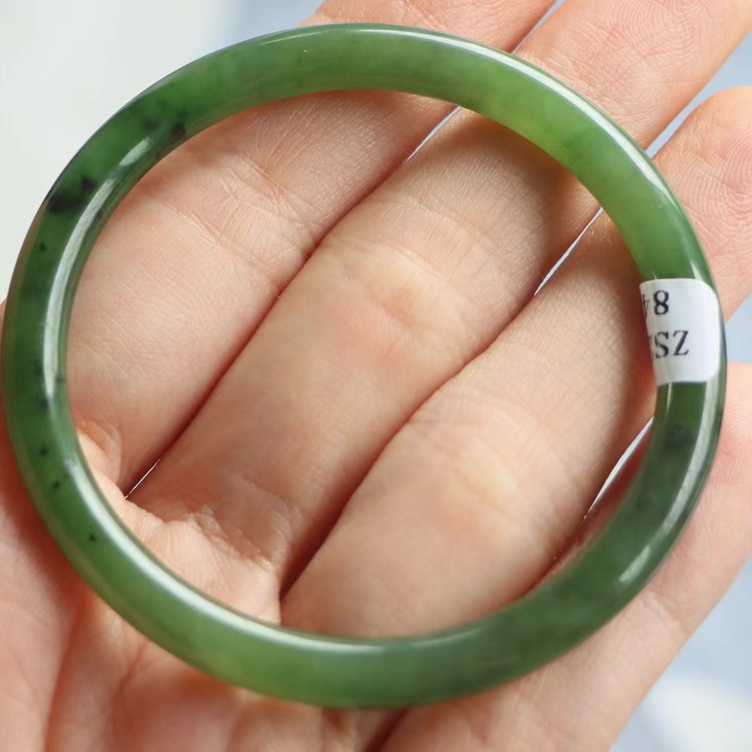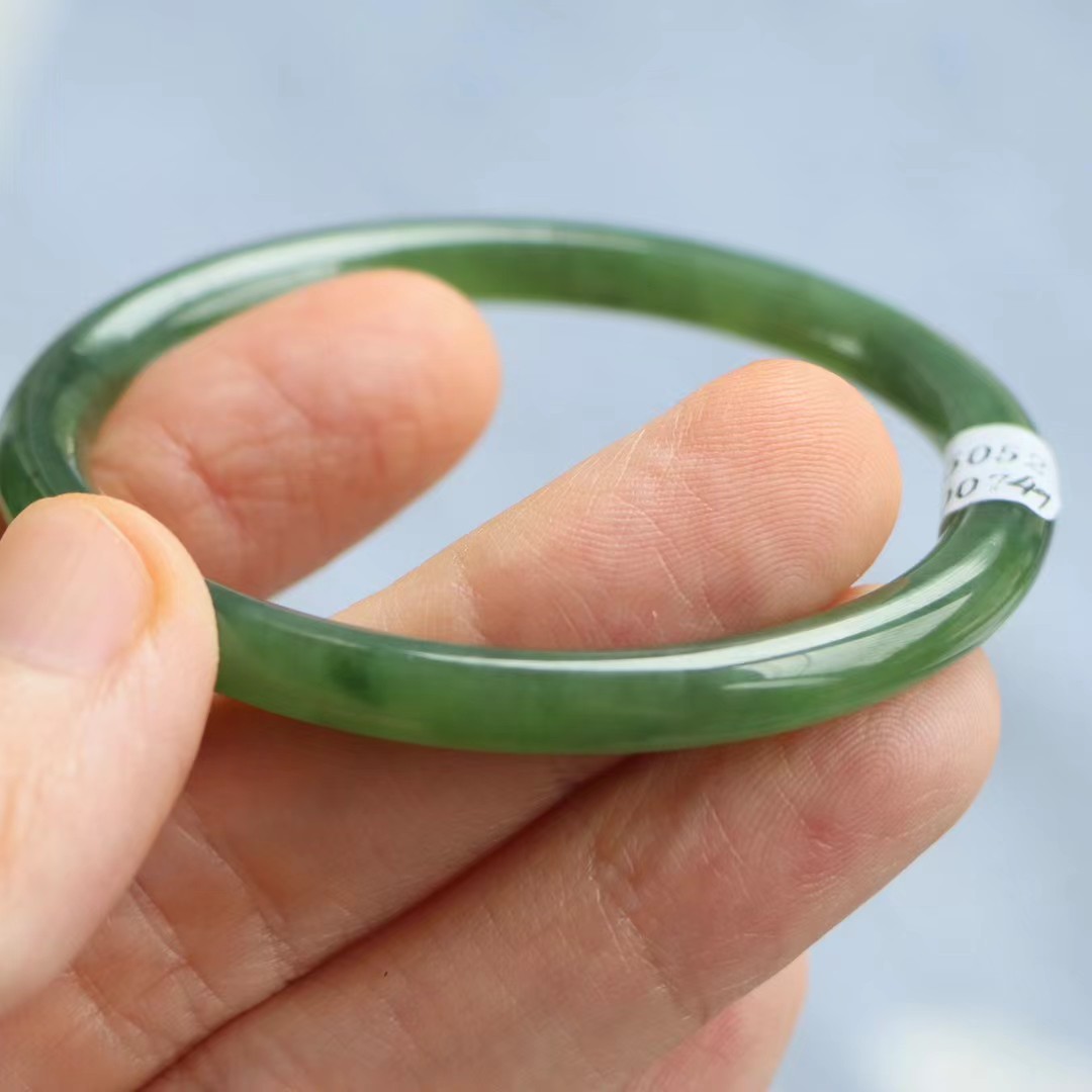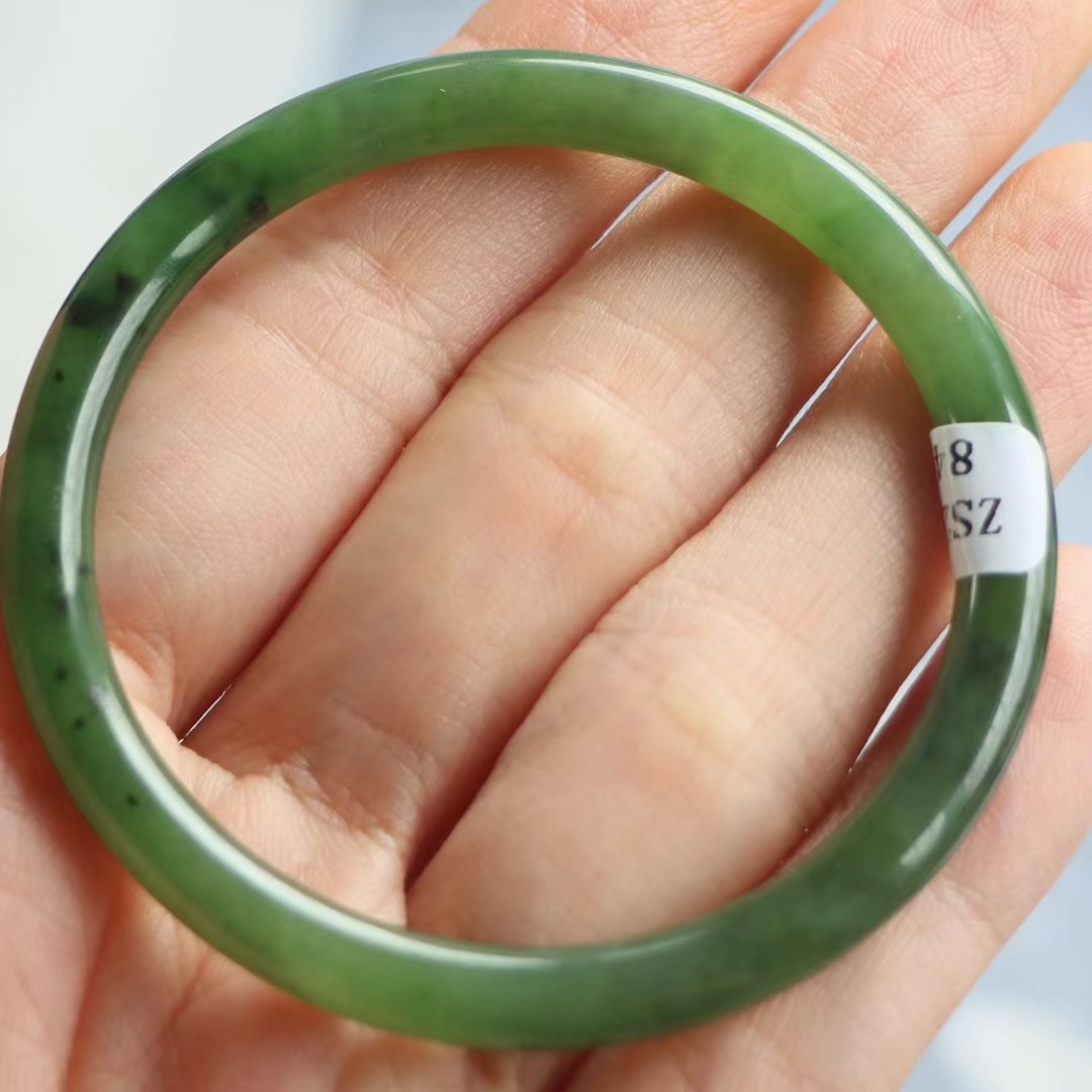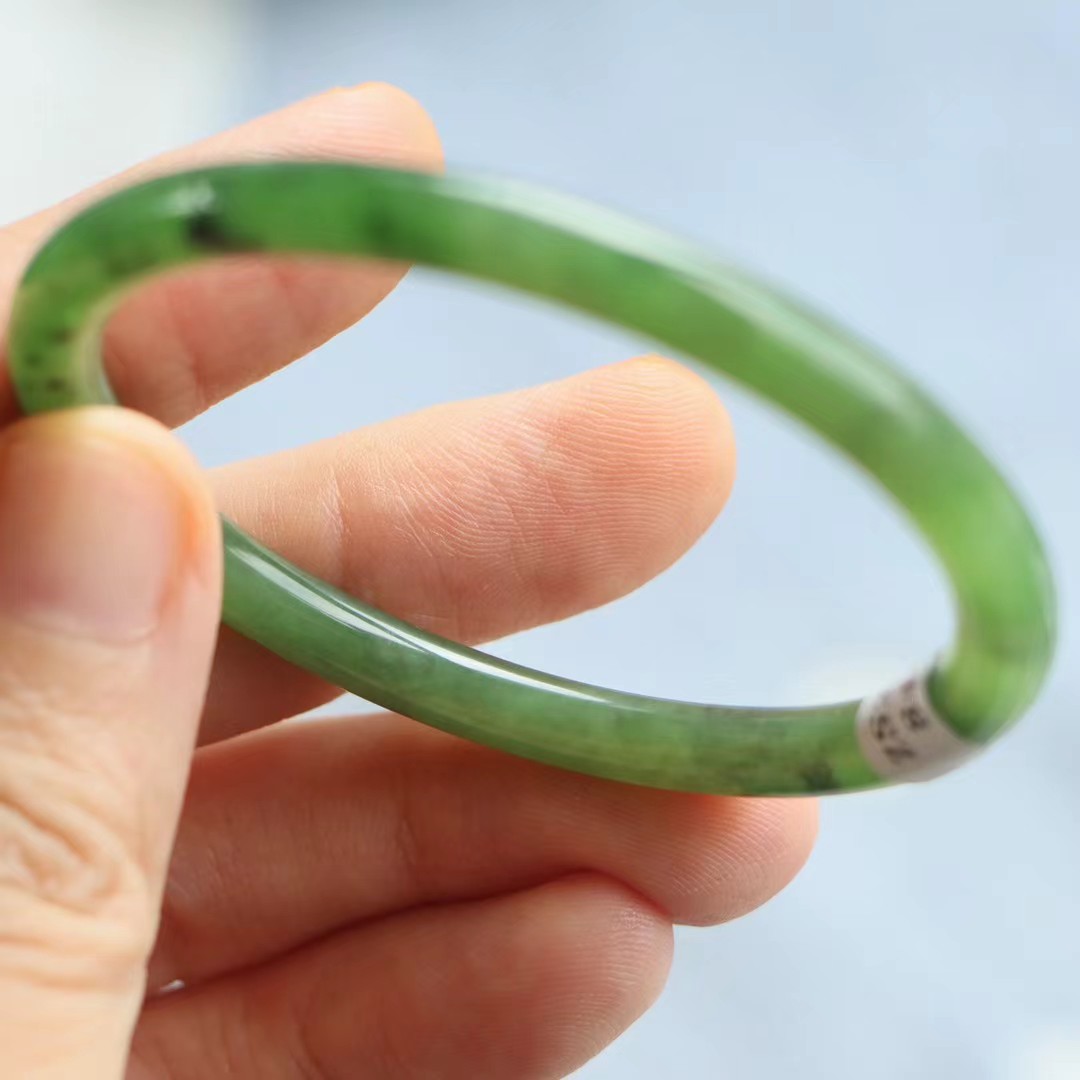 保真天然和田玉手镯49圈口证书编号5284007和田玉碧玉 巴料圆条