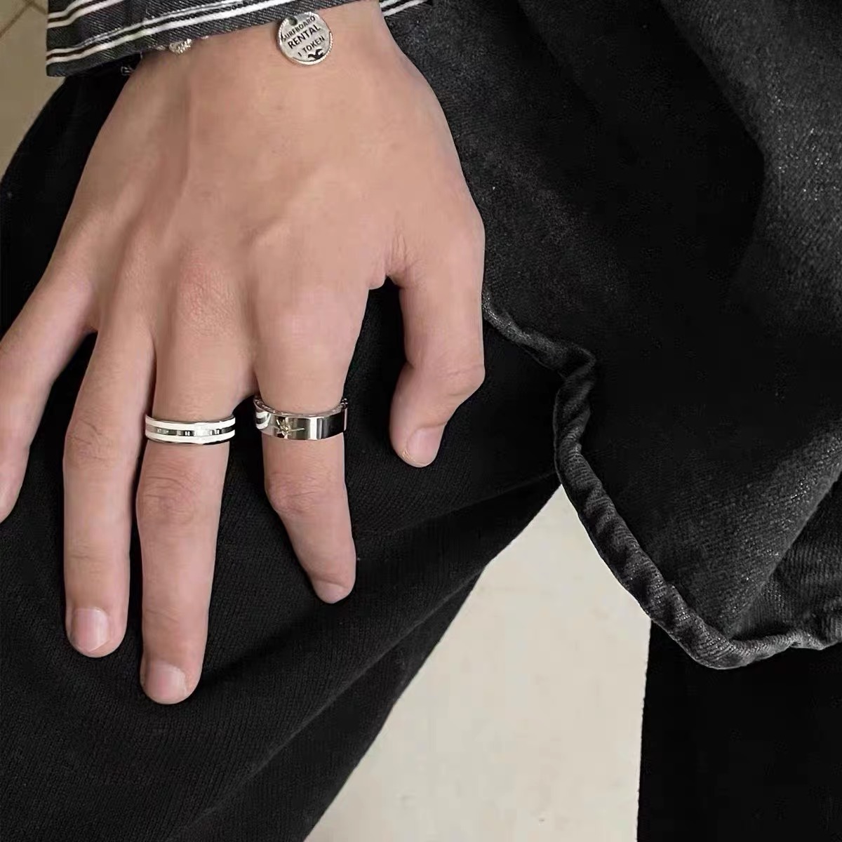 民族风小众潮流原宿风大码闭口钛钢食指戒指男生冷淡风女指环情侣