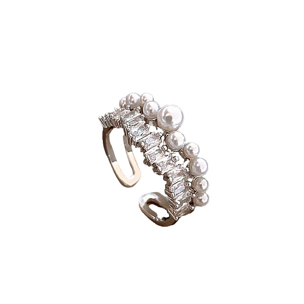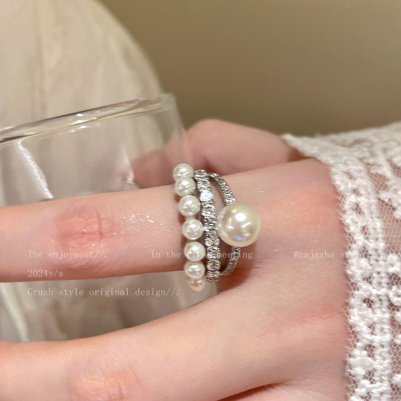 双层珠珠戒指女款粗胖手大号叠戴食指戒轻奢高级感指环可调节气质