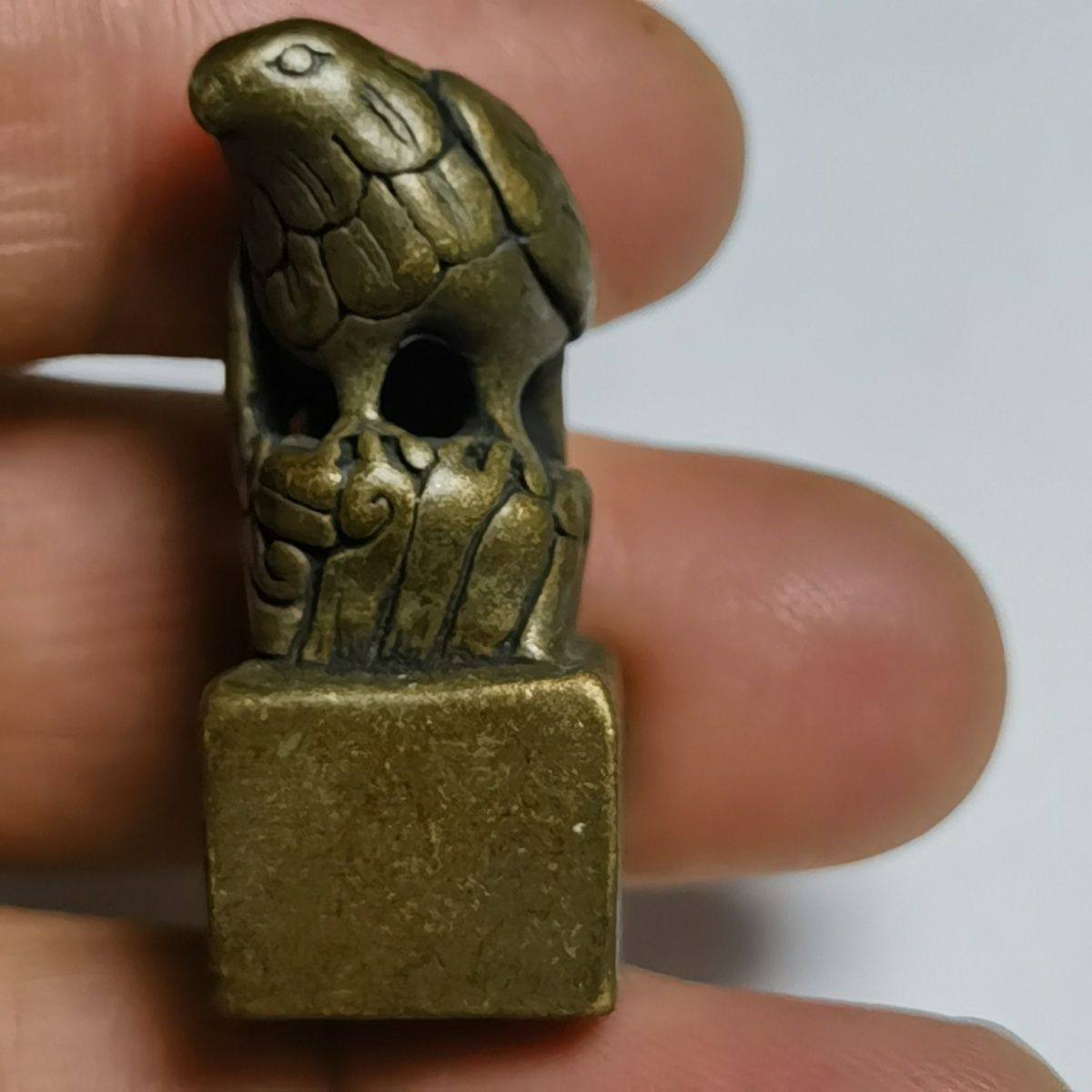 大展宏图老鹰实心黄铜印章小摆件老包浆篆刻传世文玩收藏仿古闲章