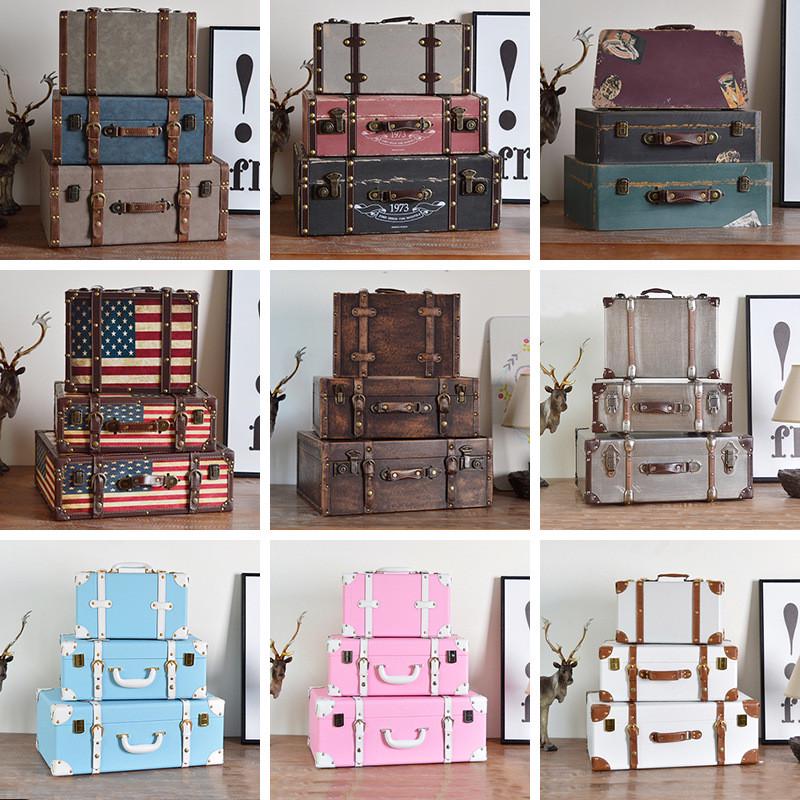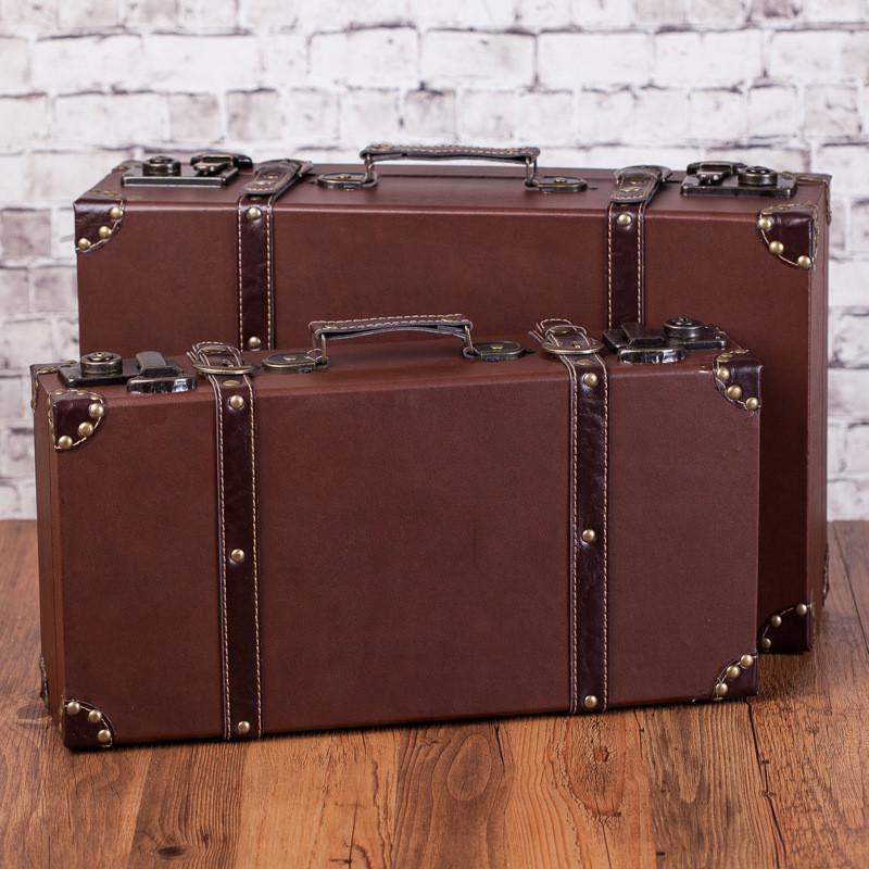 欧式复古旅行收纳箱储物木箱子老式手提箱道具皮箱子做旧创意摆件