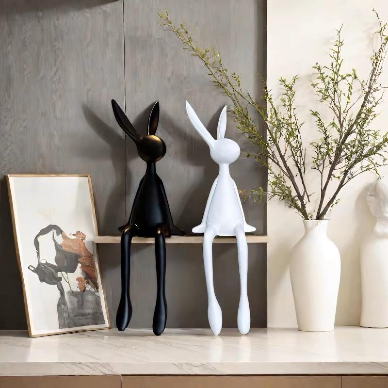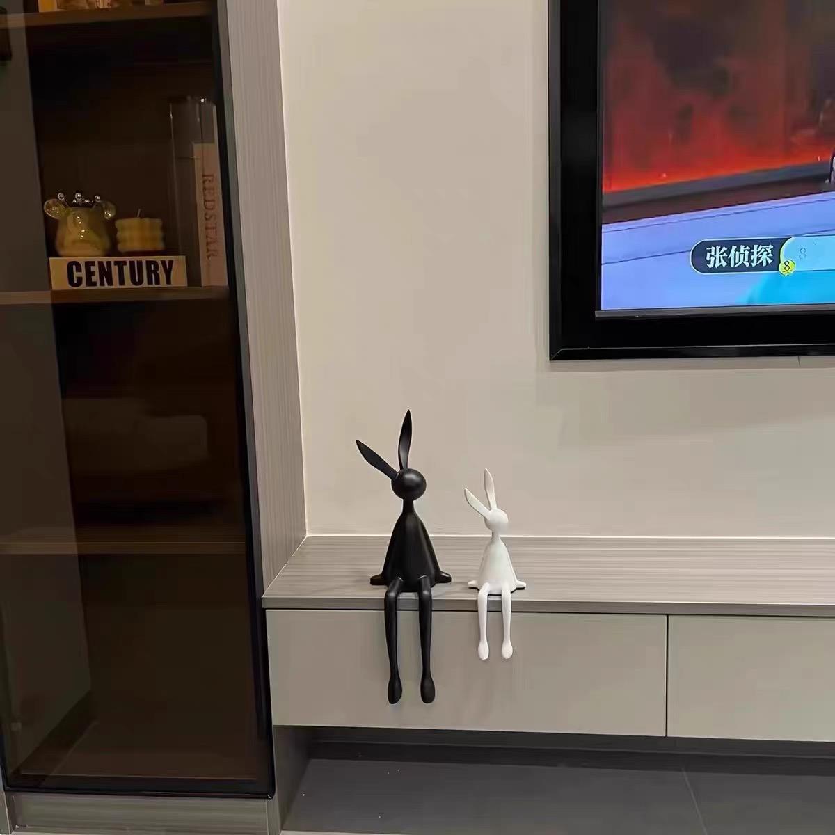 网红创意卡通坐姿长耳兔子摆件客厅电视柜酒店前台桌面玄关装饰品