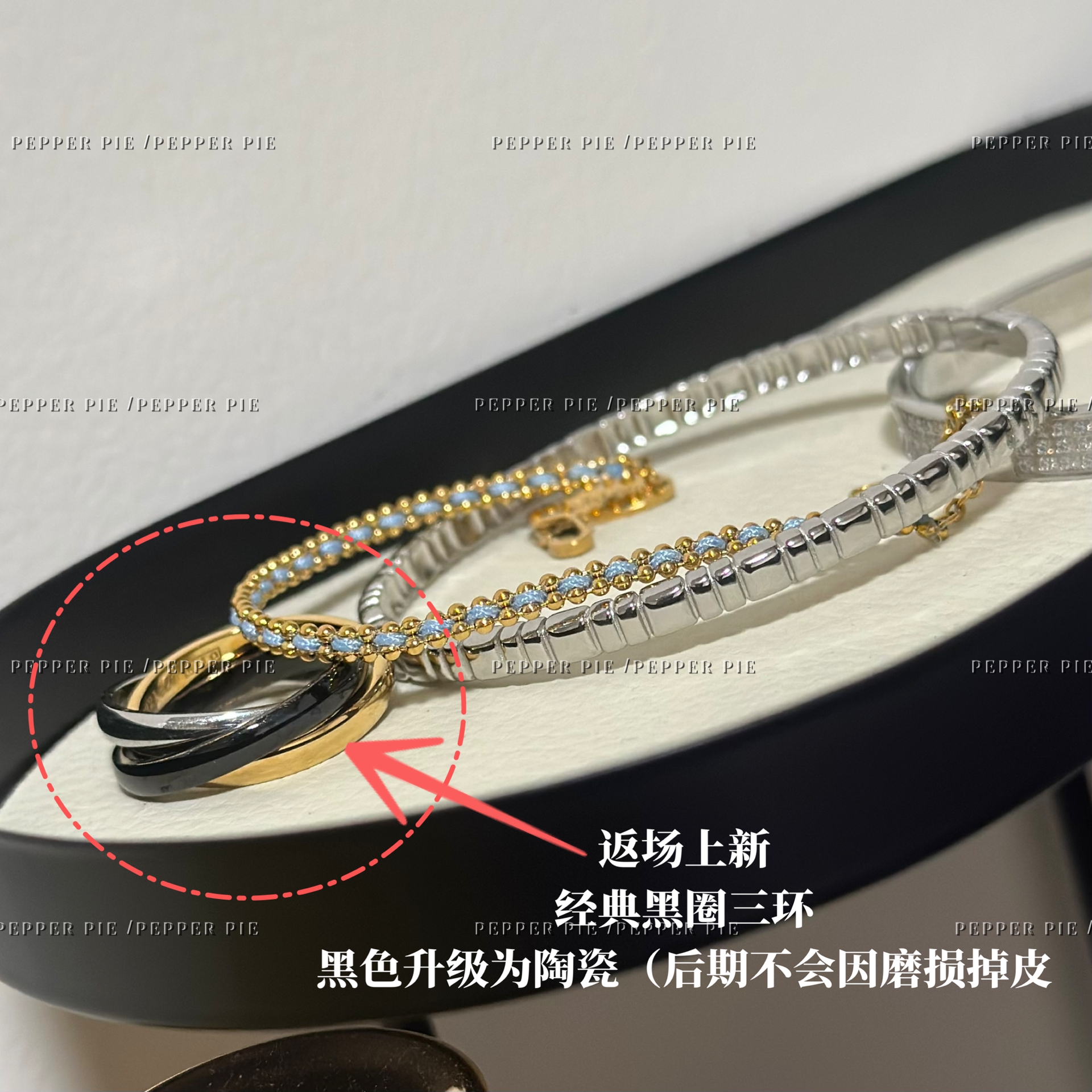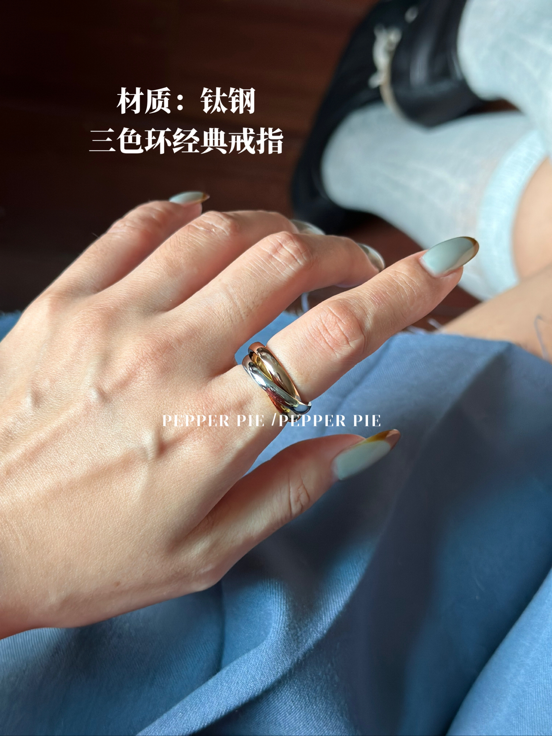 辣椒派 经典老钱风三环三色素圈戒指女 指环钛钢精工泥鳅背气质