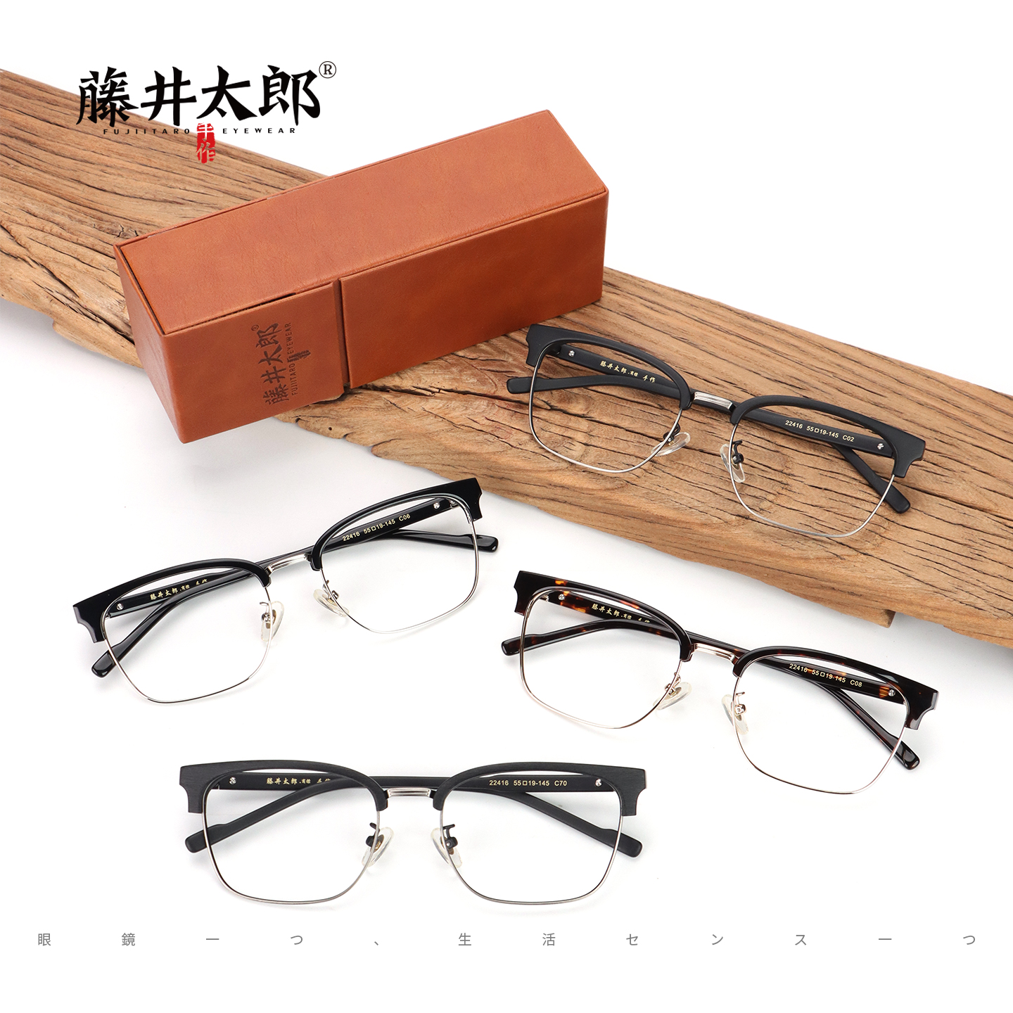 藤井太郎日系原宿复古半框眼镜架近视眼镜框大脸方框配度数眼睛框