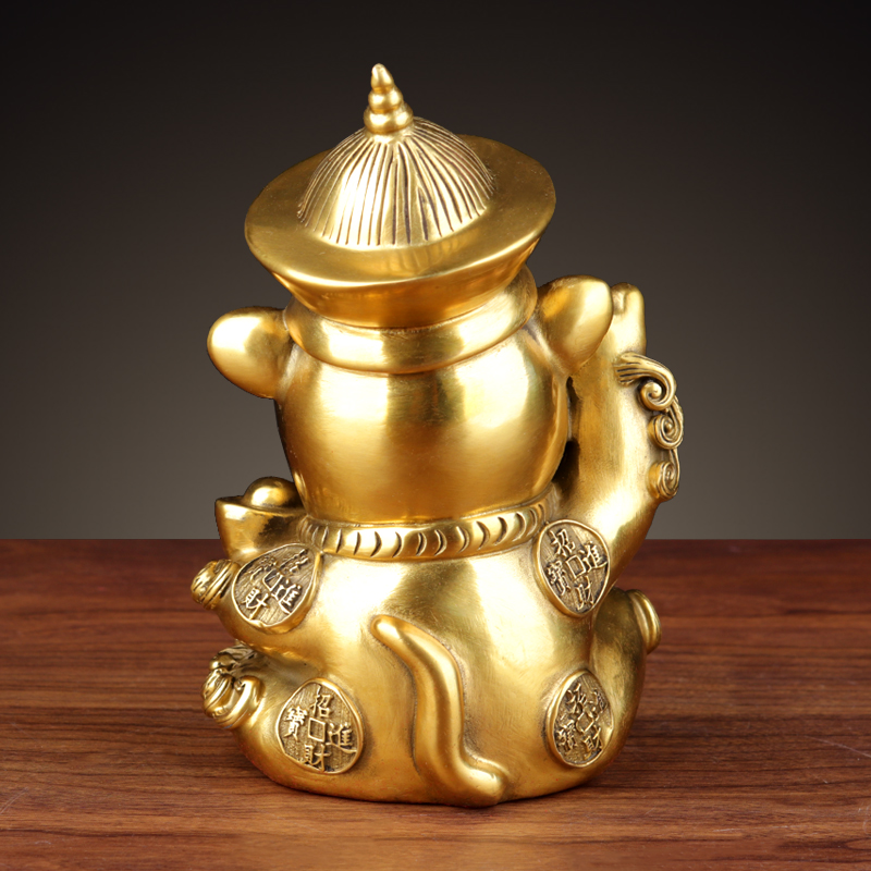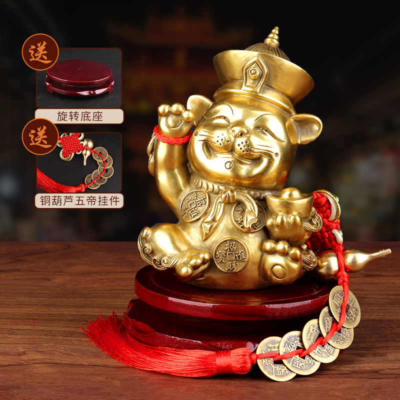 全铜招财猫摆件开业发财猫收银台摆件前台客厅装饰品铜招手猫礼品