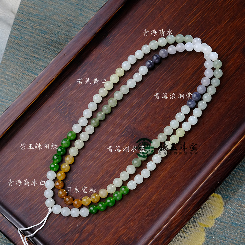 新疆和田玉卡6多宝多色渐变款多圈108颗佛珠圆珠手链项链念珠手持
