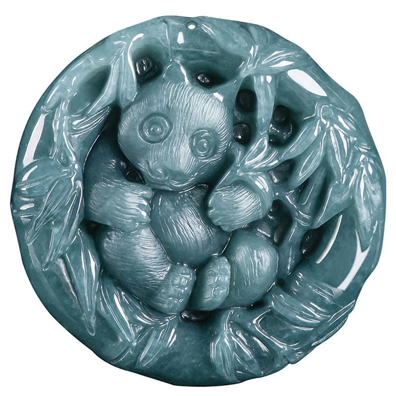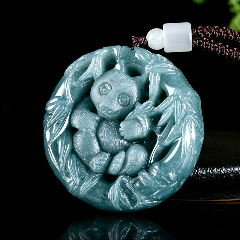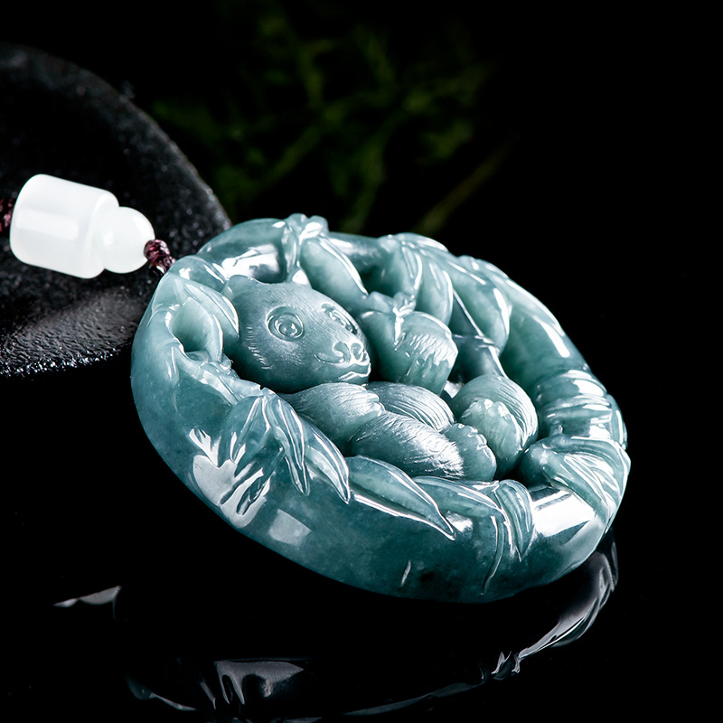 天然a货翡翠蓝水国宝熊猫立体吊坠糯种玉石可爱纪念品送礼挂件